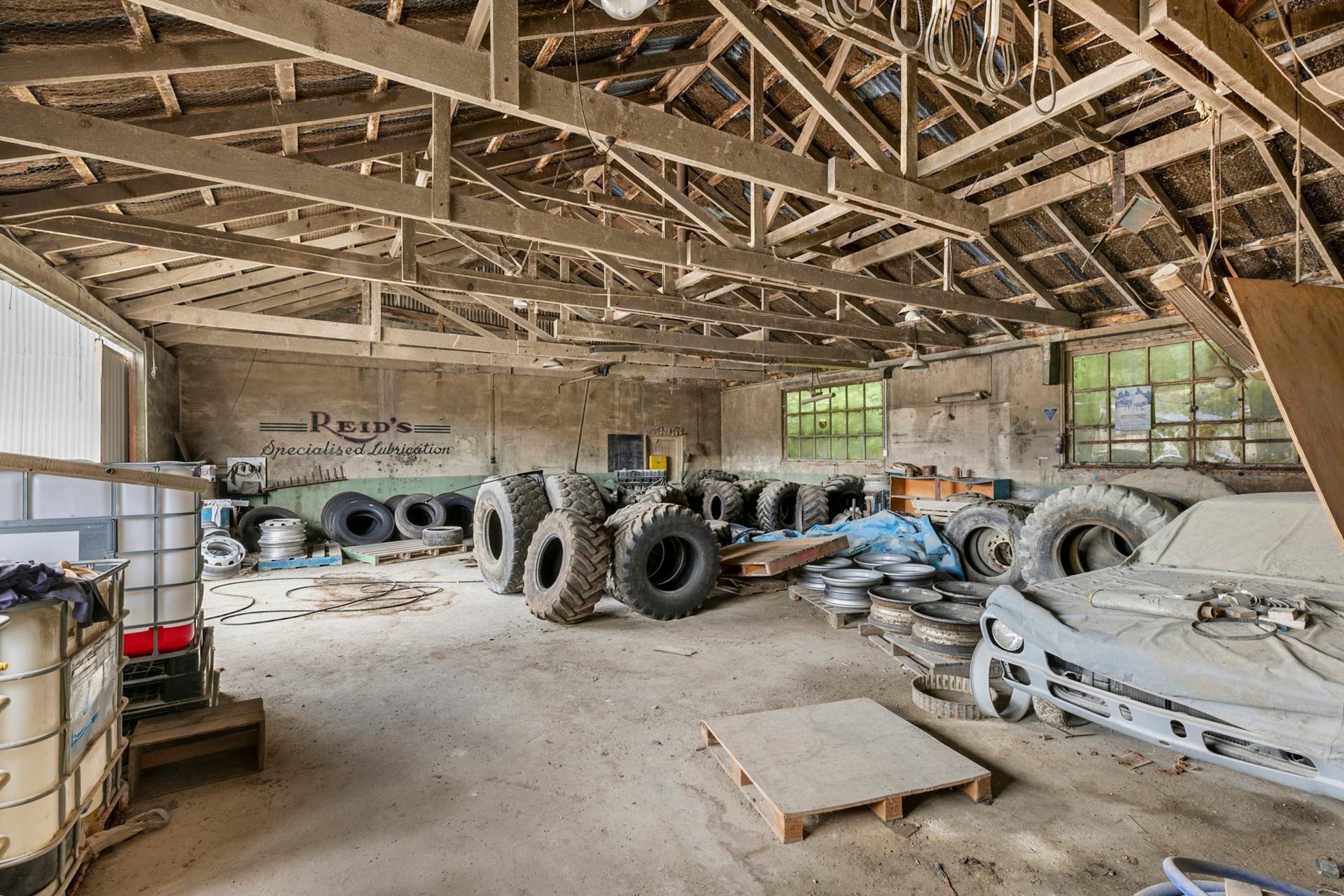 This building is approx 180 sqm and was previously utilized as a storage facility. The interior boasts a sturdy concrete floor and is equipped with power. Additionally, the property offers approx four parking spaces. Not secure.