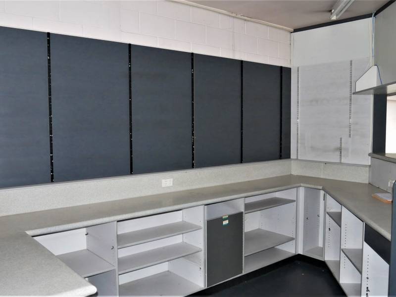 Kitchen and toilet at the rear. Extra office and storage space plus some shelving