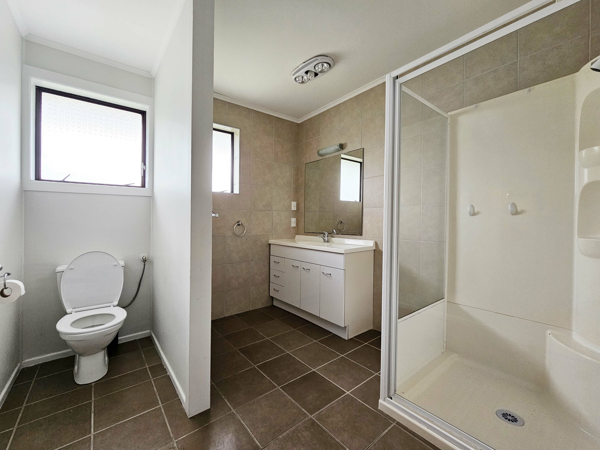 - A large, spacious bathroom