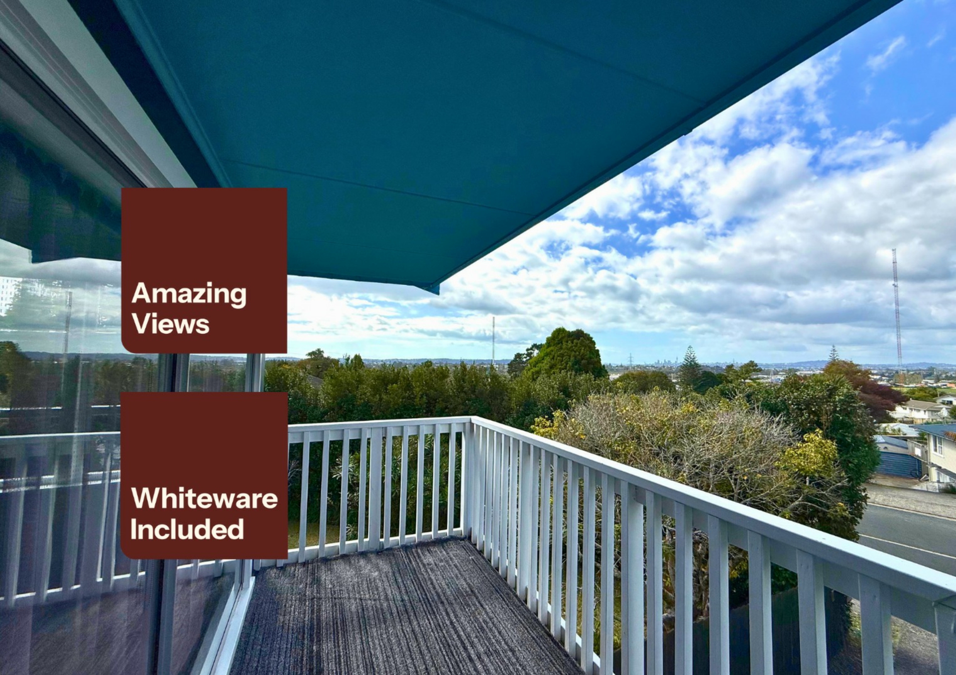 - Front deck with views towards the Sky Tower