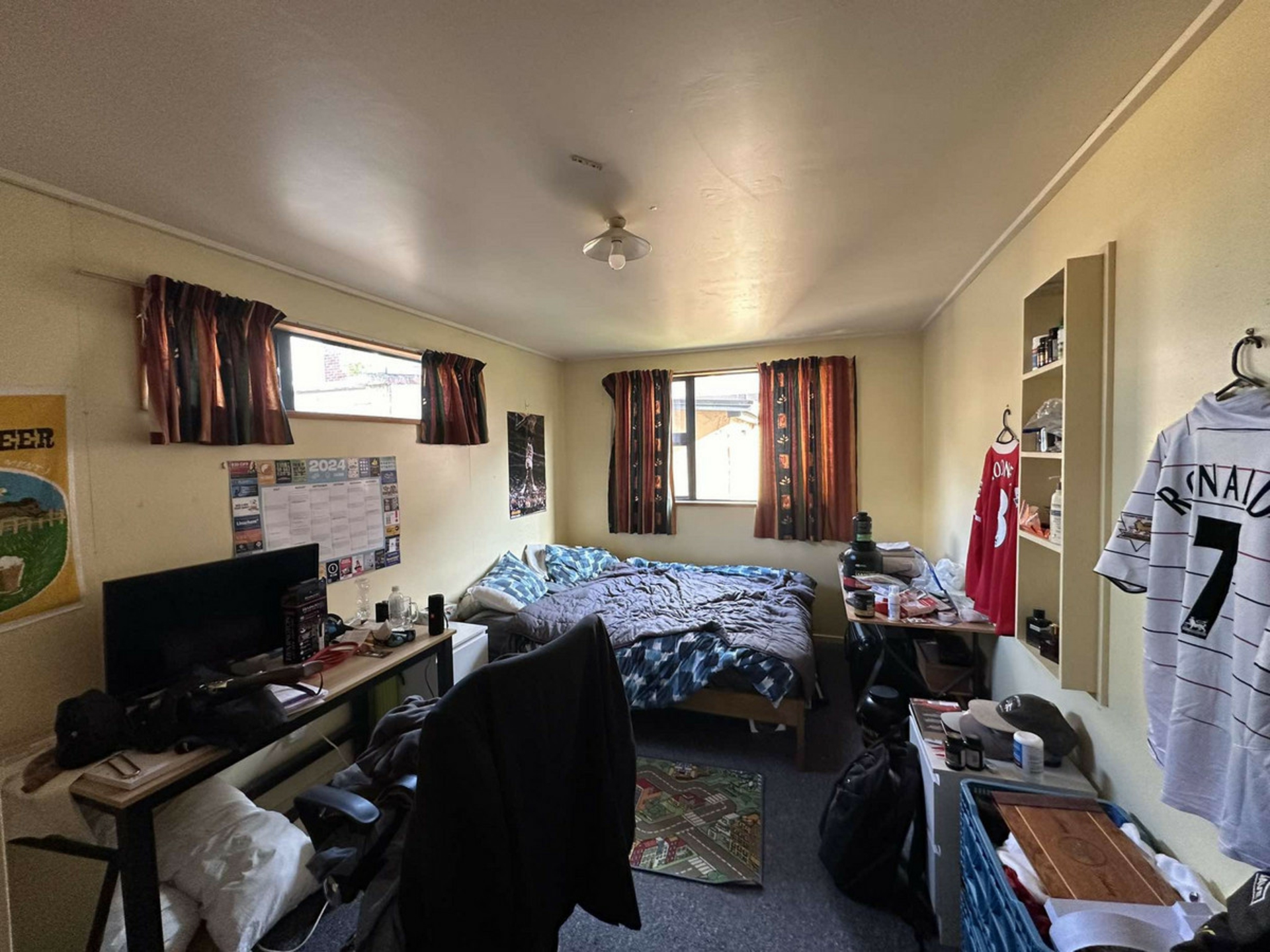 Sunny flat in the University Centre! Offering six large bedrooms, open plan living/dining with tidy kitchen, two good size bathrooms with two toilets - all heated by way of heat pump. This flat is in a great location - just a three minute walk to University and a five minute walk to Centre City. One off-street car park. Fridge, washing machine and dryer included.