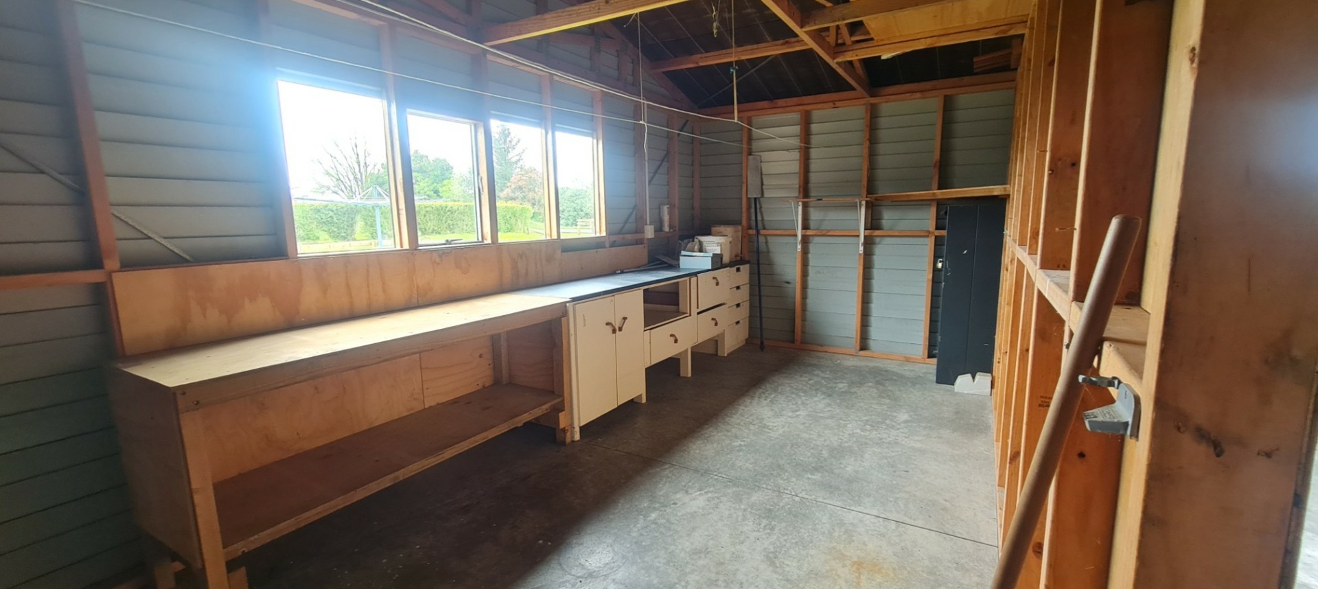 Outside, the low-maintenance, fully fenced section provides peace of mind, while the deep double garage with a dedicated workbench and project space is ideal for hobbyists or extra storage.