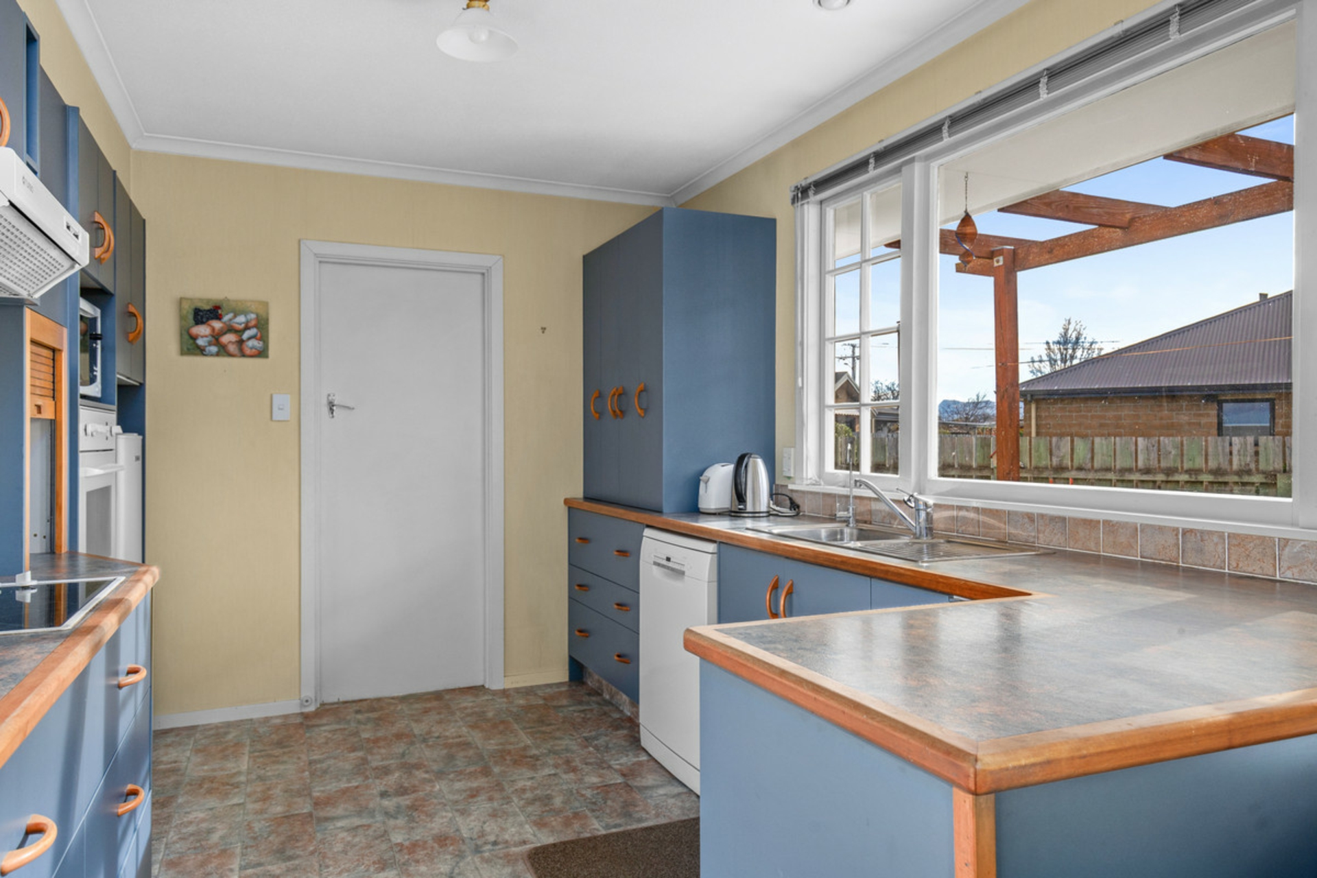 Step inside to a spacious galley kitchen, open plan dining and living area complete with a heat pump and a free-standing diesel fire for year-round comfort. French doors open from the dining room onto a covered verandah style deck, providing the perfect spot to unwind and enjoy the peaceful, private garden setting.