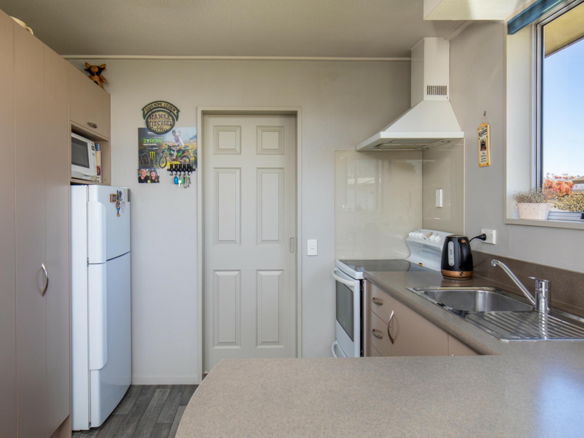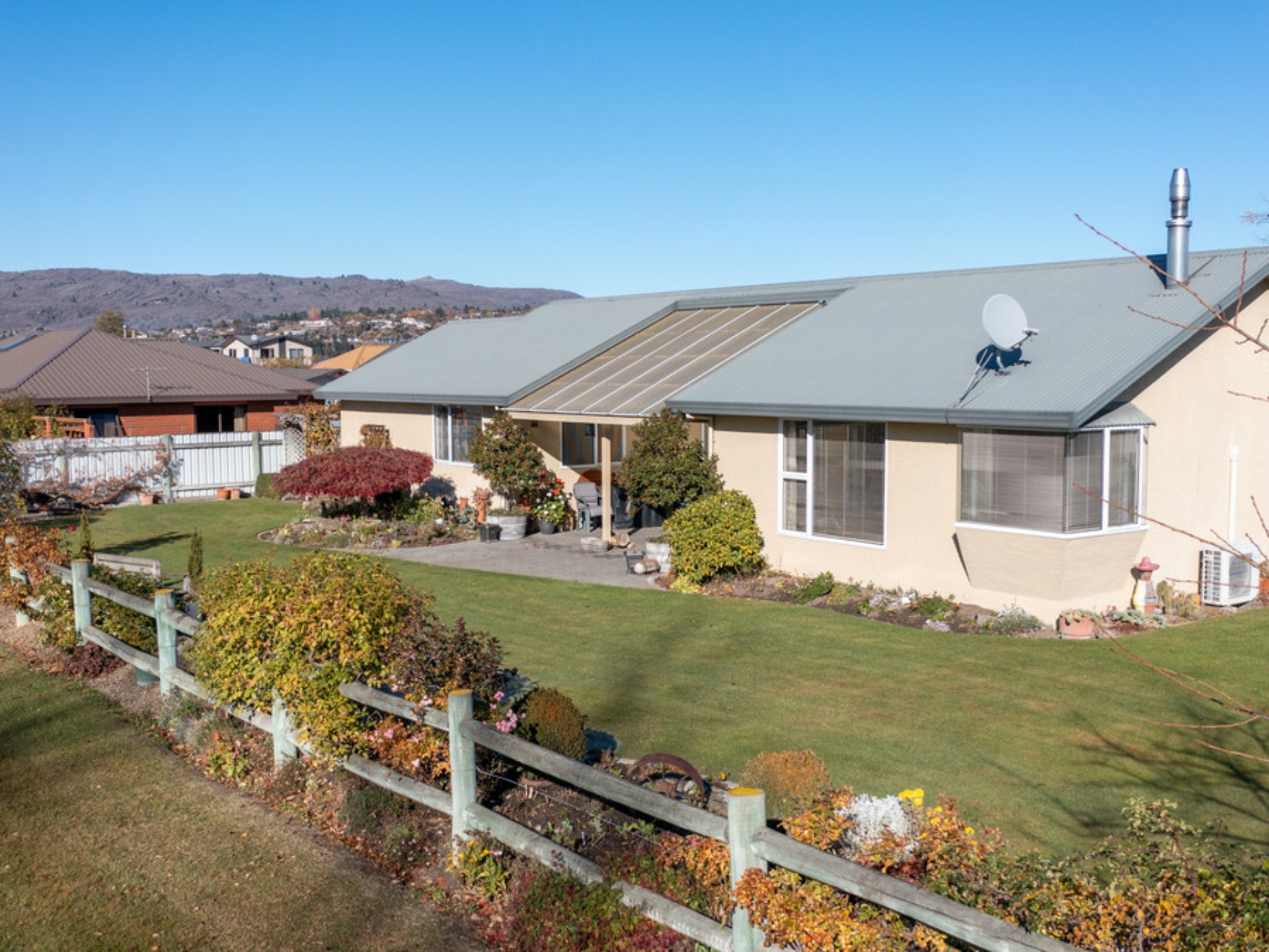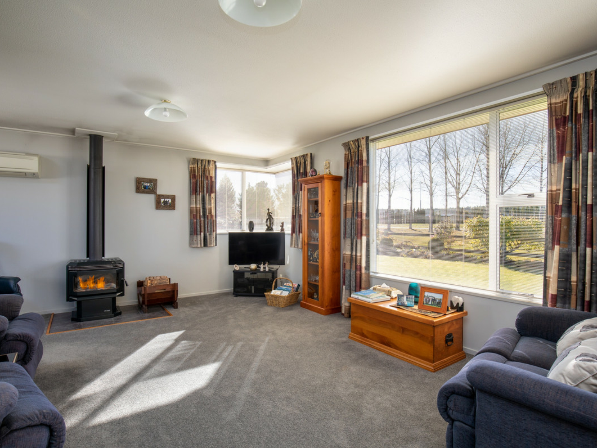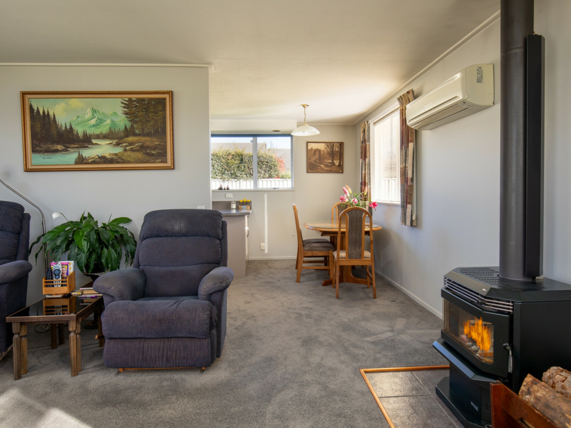 Open plan living captures the sun all day and when cooler is warmed by a heat pump and or log burner, three good sized bedrooms, nice bathroom plus an internally accessed single garage.