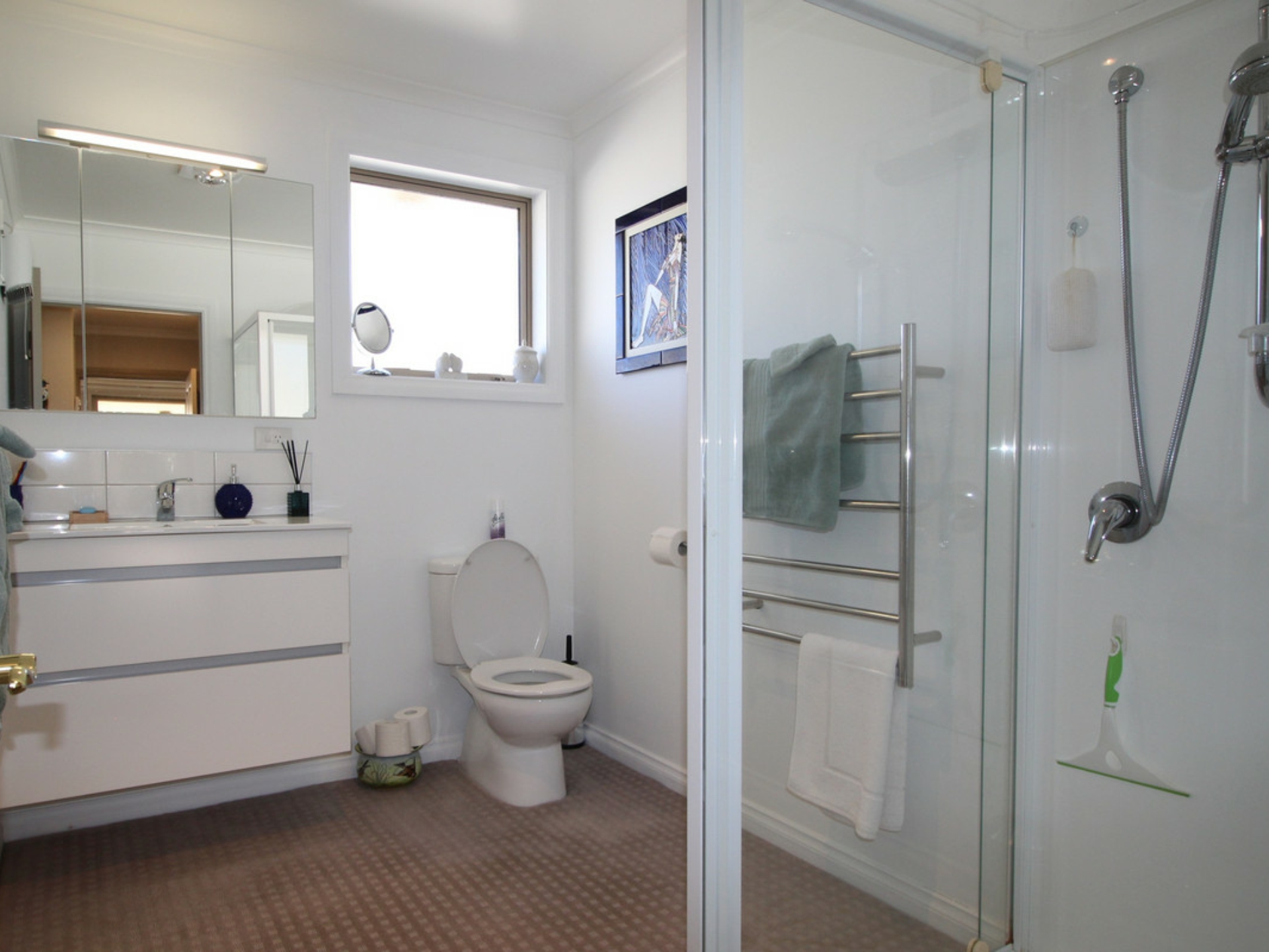 Open plan kitchen, dining, living with two bedrooms plus a third bedroom or study, lovely bathroom and two toilets.