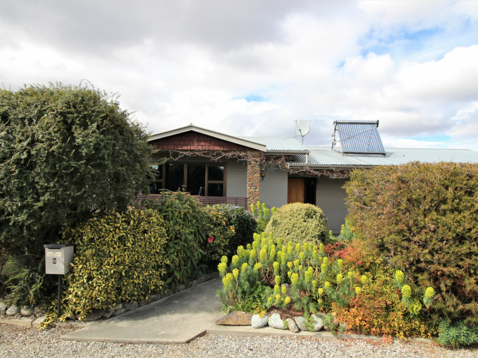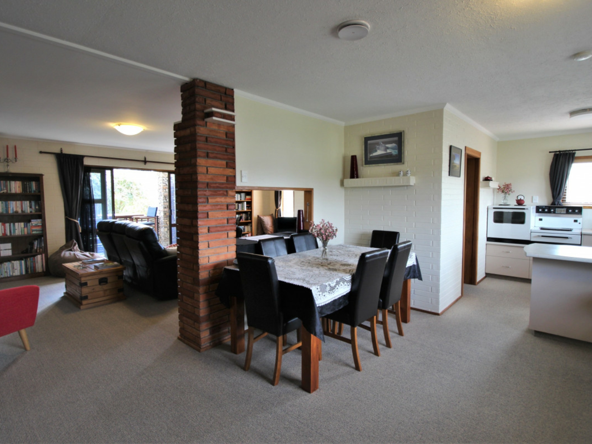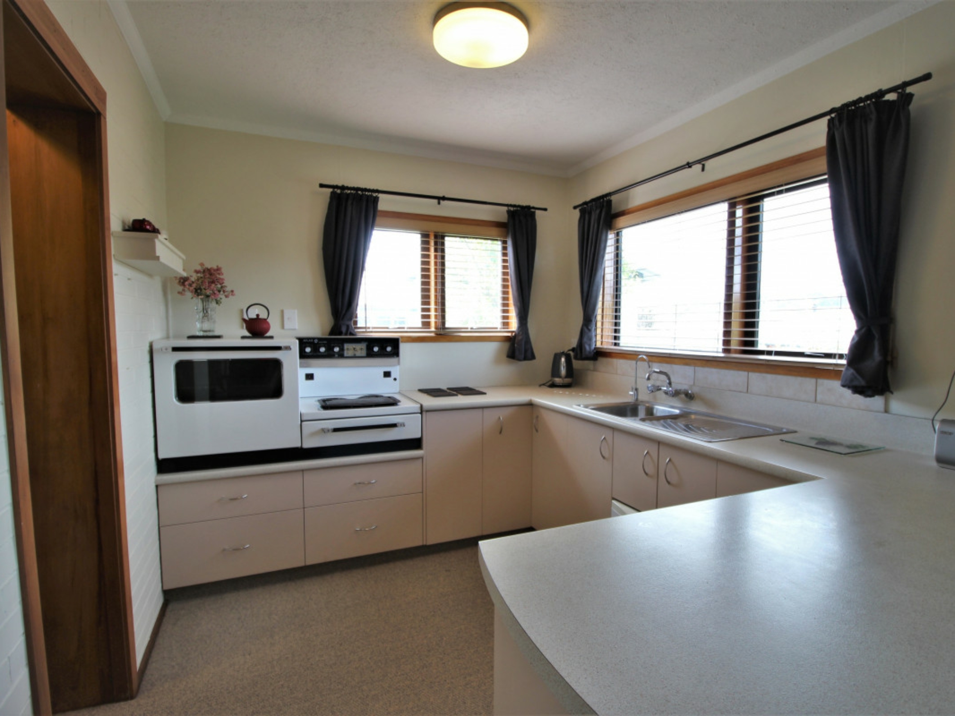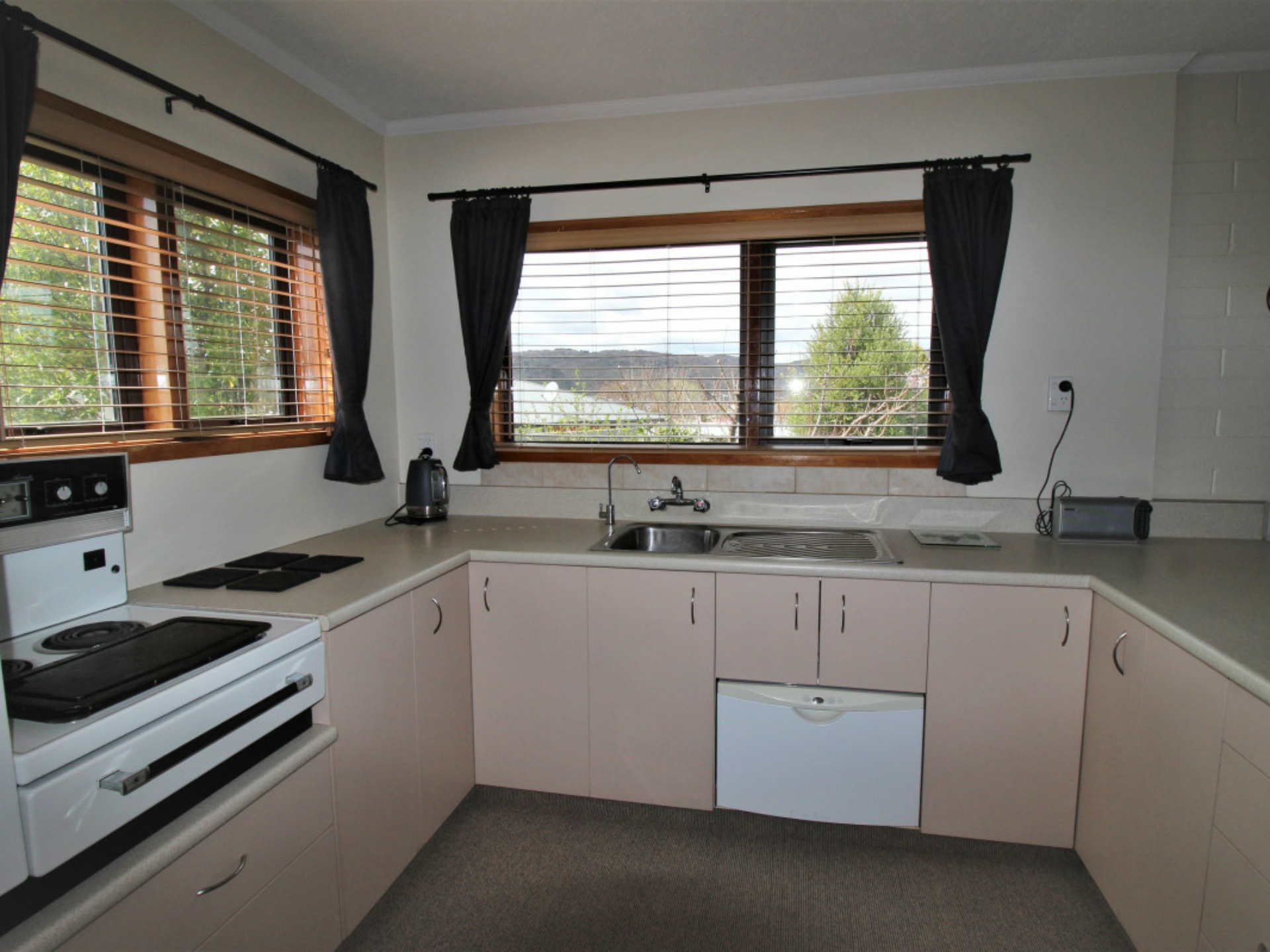 An original but tidy kitchen with a great outlook also includes a walk-in-pantry. The interior décor is very tidy with good carpets throughout and mostly double glazed. Solar panels are a bonus in assisting with heating the hot water.