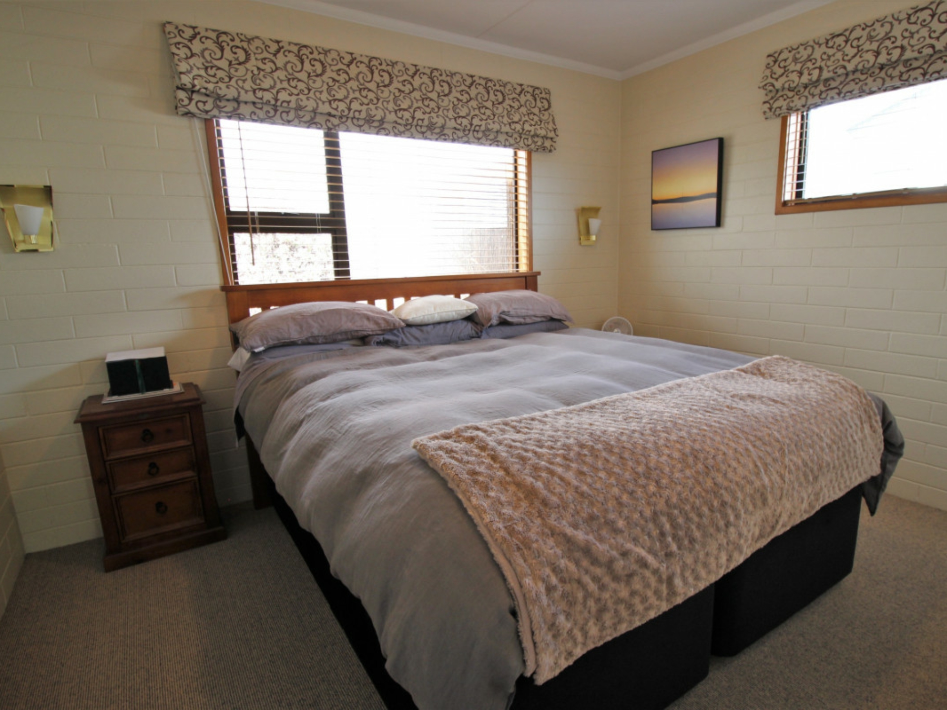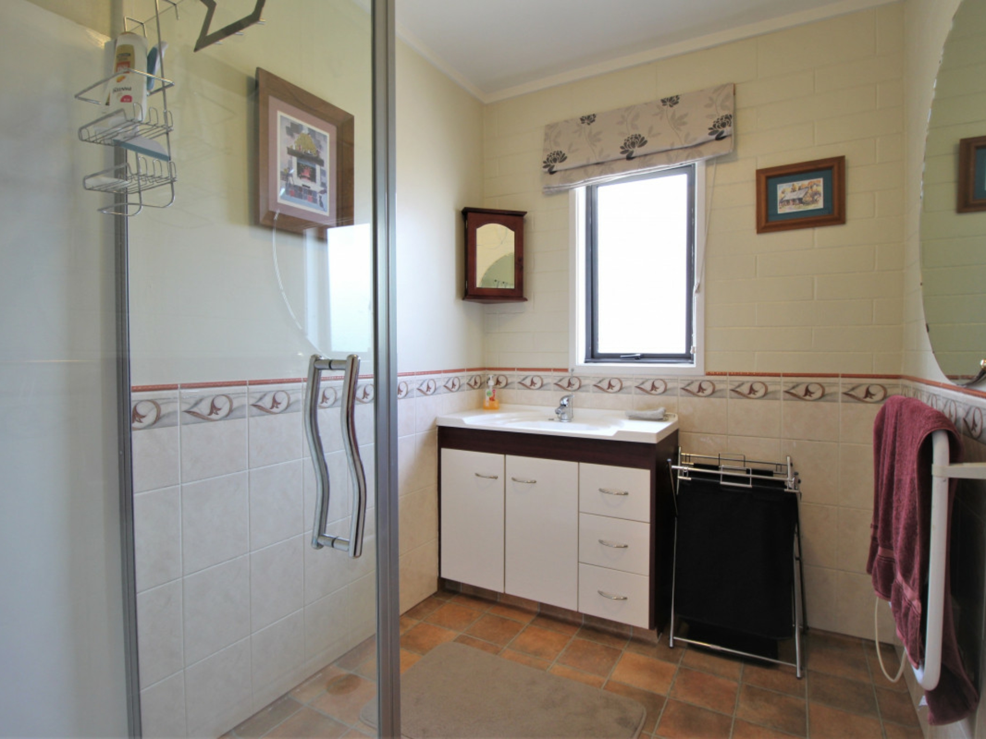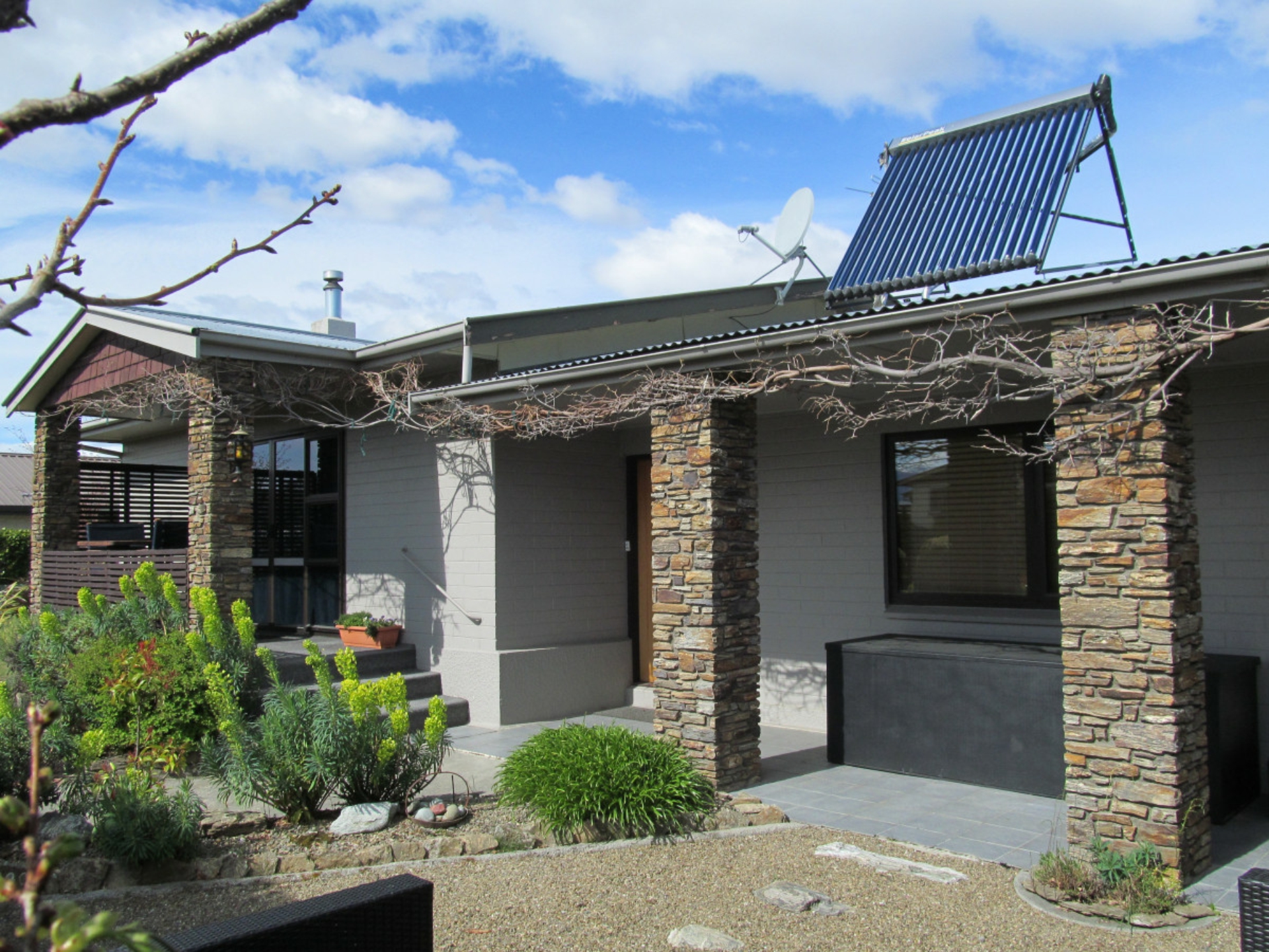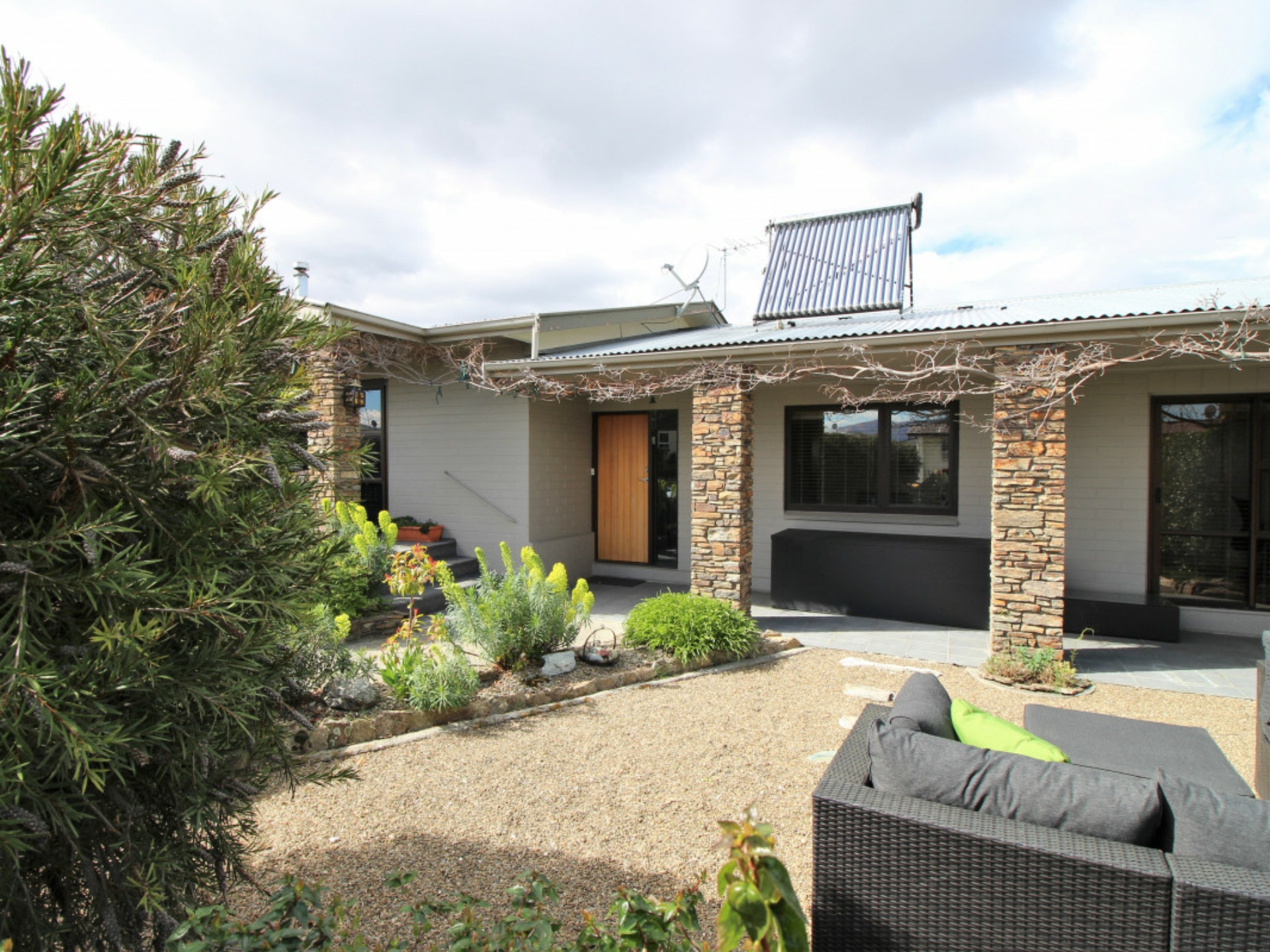 An original but tidy kitchen with a great outlook also includes a walk-in-pantry. The interior décor is very tidy with good carpets throughout and mostly double glazed. Solar panels are a bonus in assisting with heating the hot water.