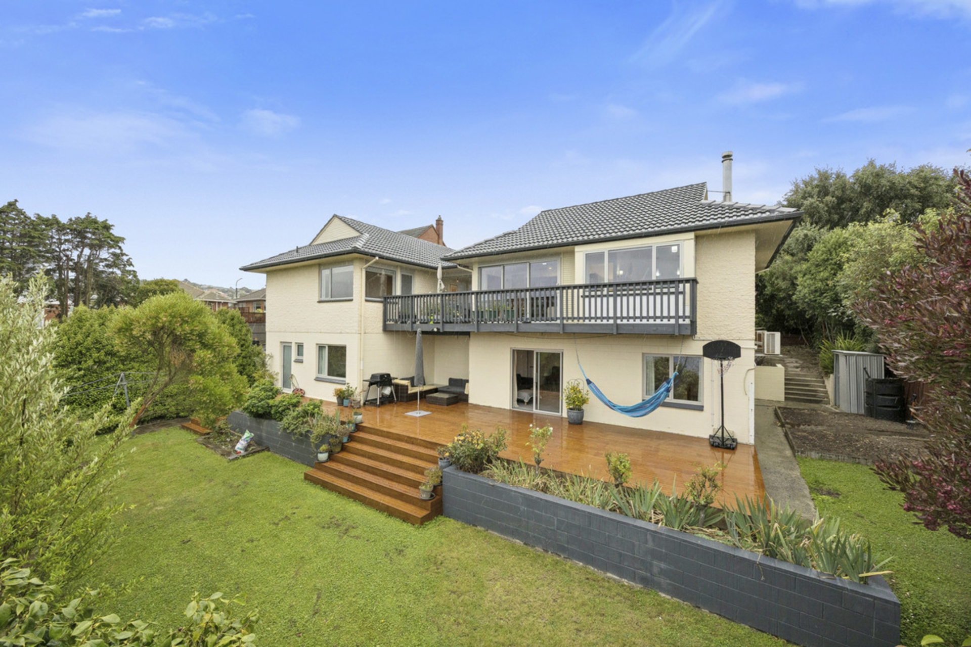 Standout features are the expansive decks that spans the upper & lower levels, both overlooking a beautifully established garden and beyond, it's the perfect setting for entertaining or relaxing while keeping an eye on the children while they play. Privately positioned up a leg-in driveway, the home offers both seclusion and security in a premium location.