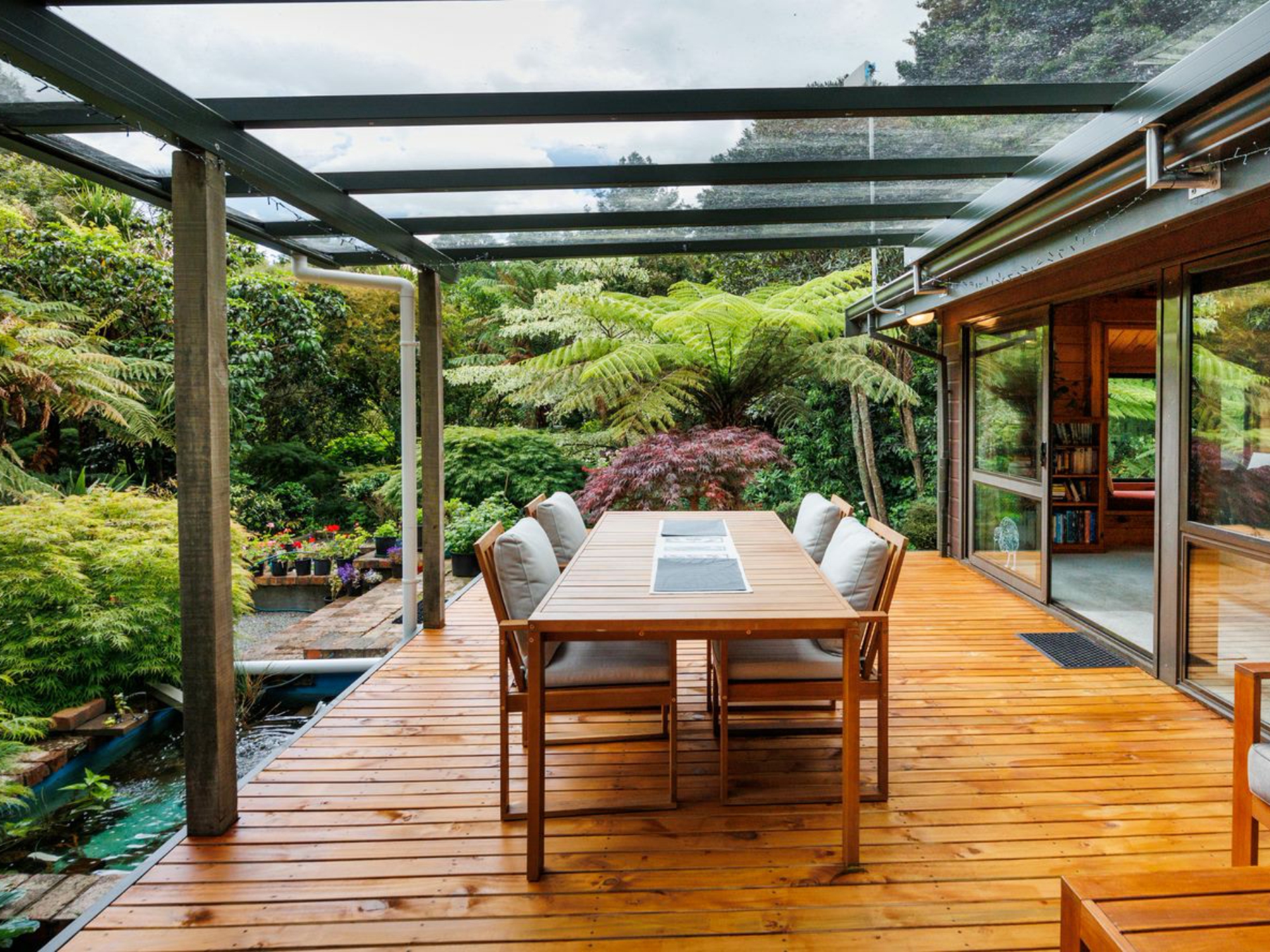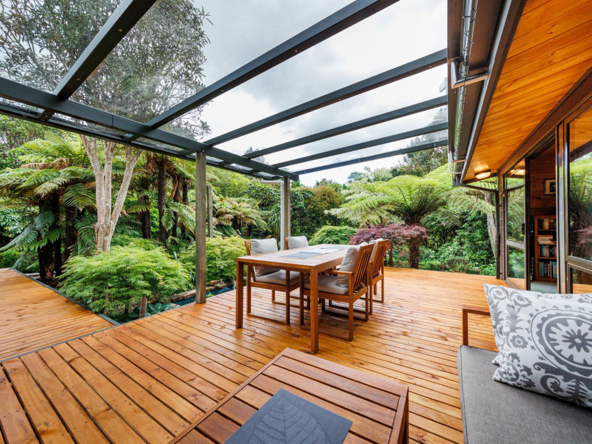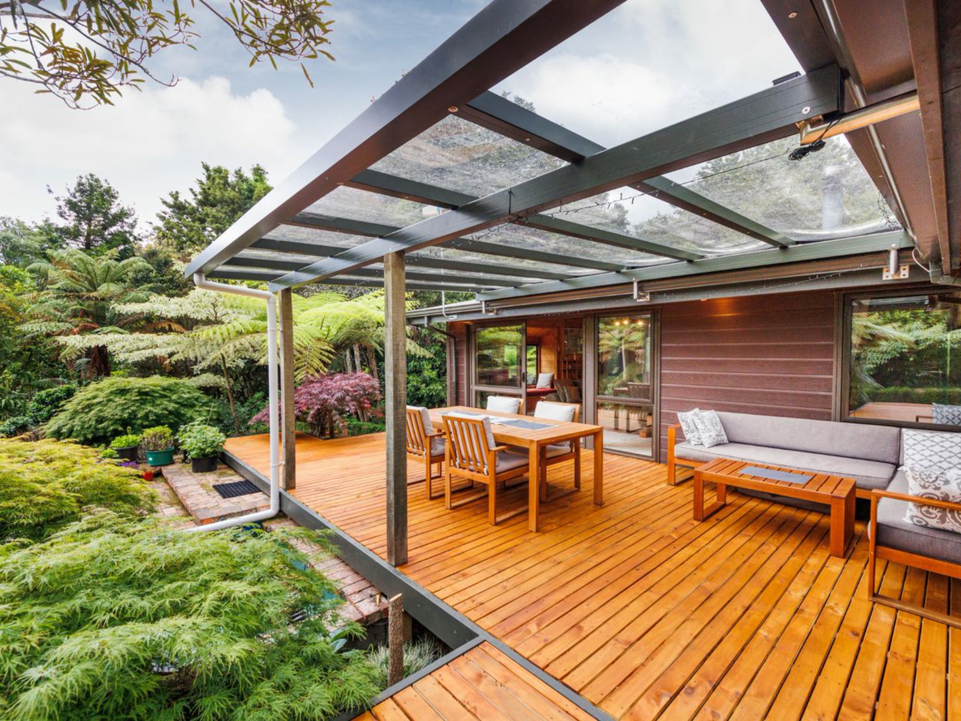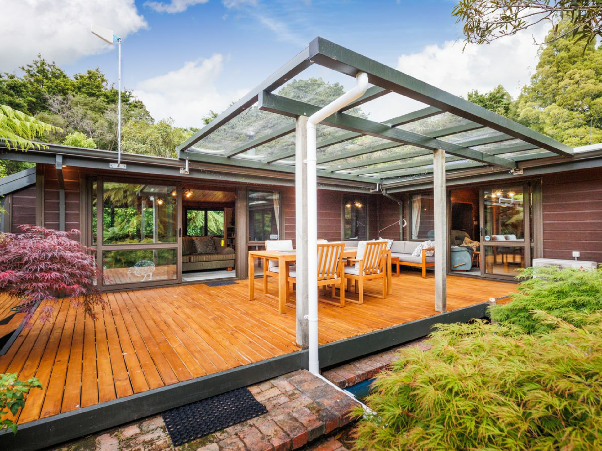 Brand-new decking wraps itself around the home, allowing for effortless indoor-outdoor living, while a sheltered setting off the living areas ensures year-round entertainment is a certainty.