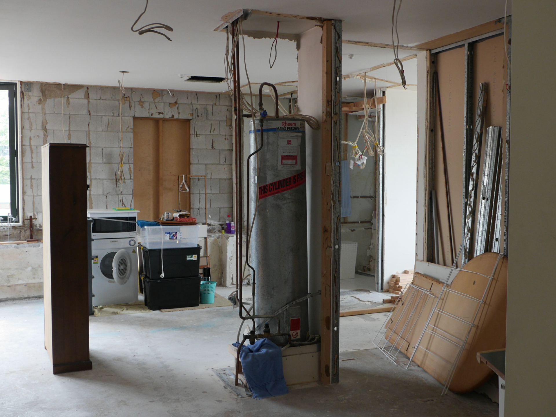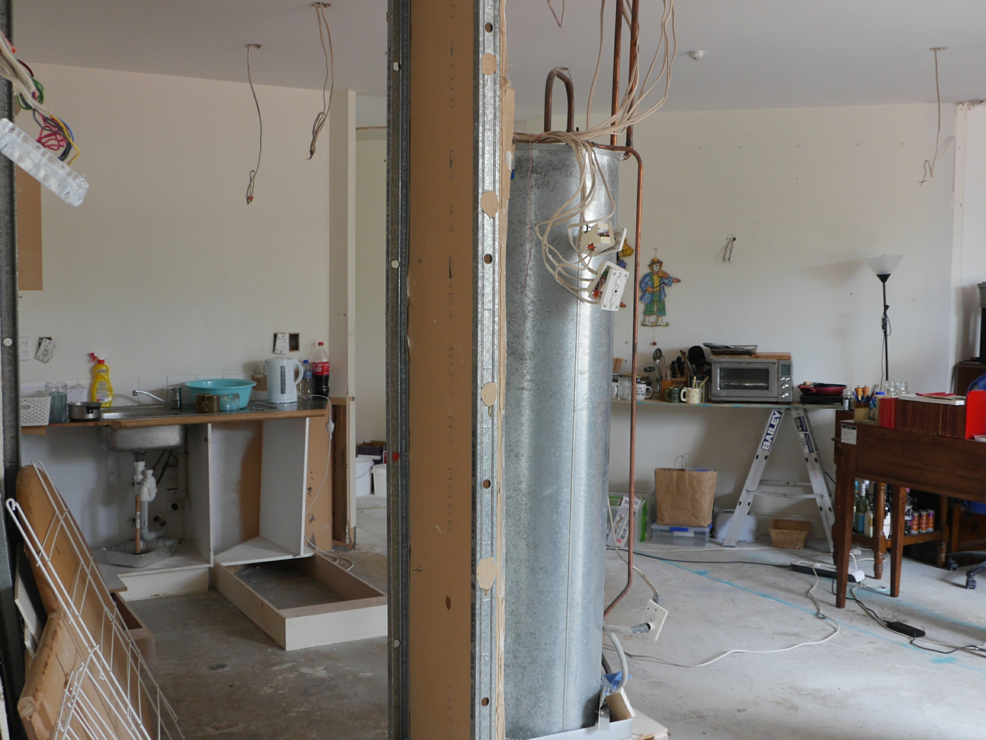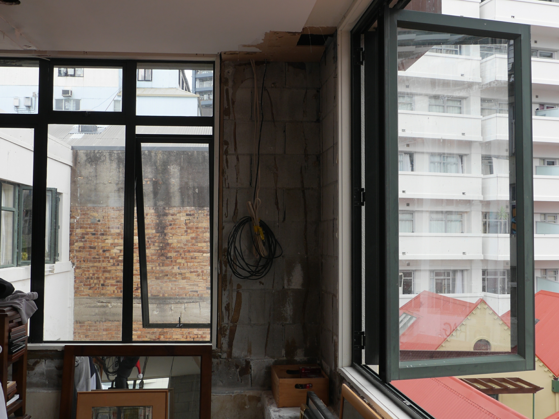 Owner has stripped all the exterior walls, due to no wall insulation and no damp proof, course with a view to bringing the apartment up to code of compliance status.