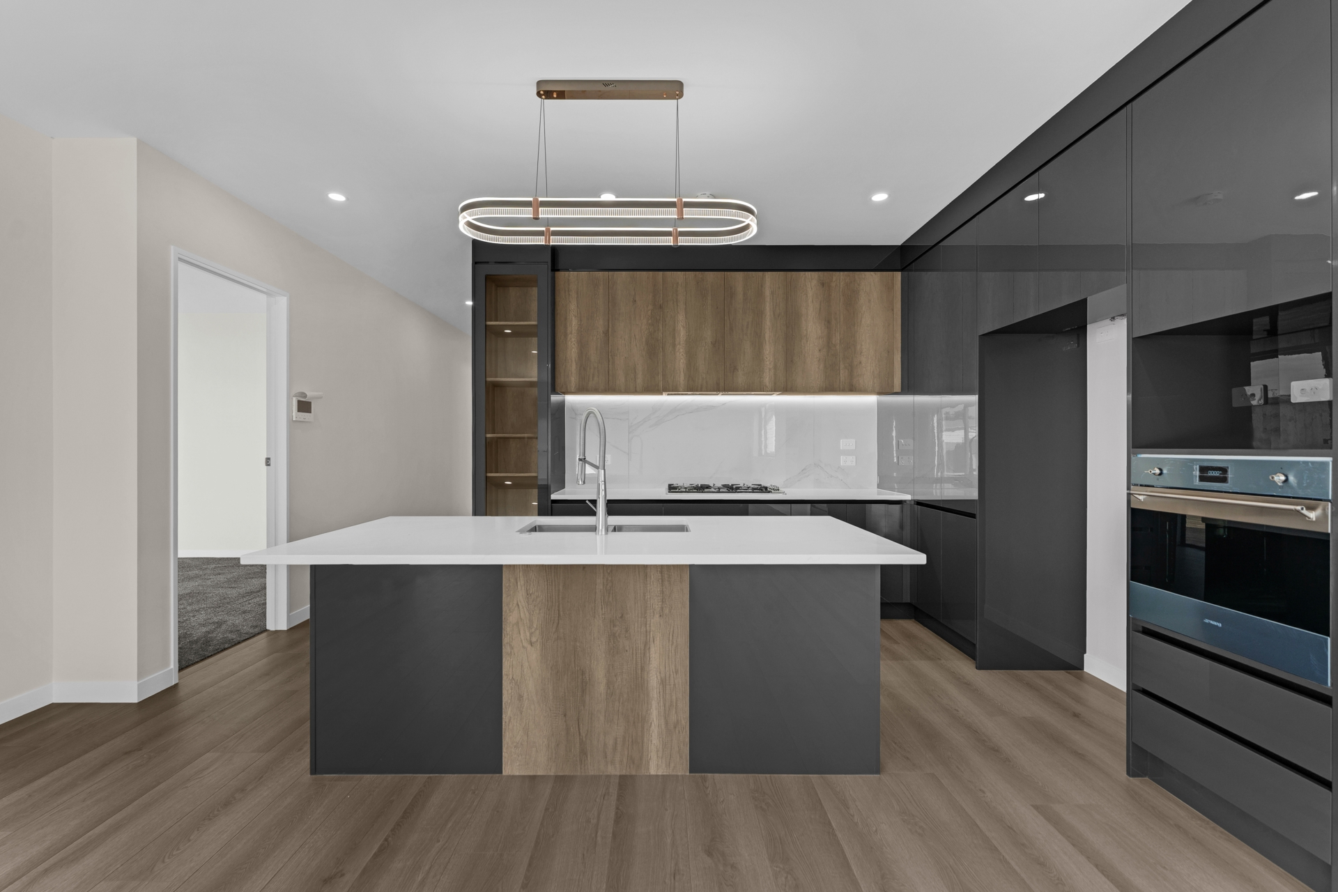 Step inside to a warm and light-filled open-plan kitchen and dining area that effortlessly connects to a private outdoor deck-perfect for entertaining or enjoying peaceful family moments. The kitchen is the heart of the home, complete with a large island bench and quality appliances.