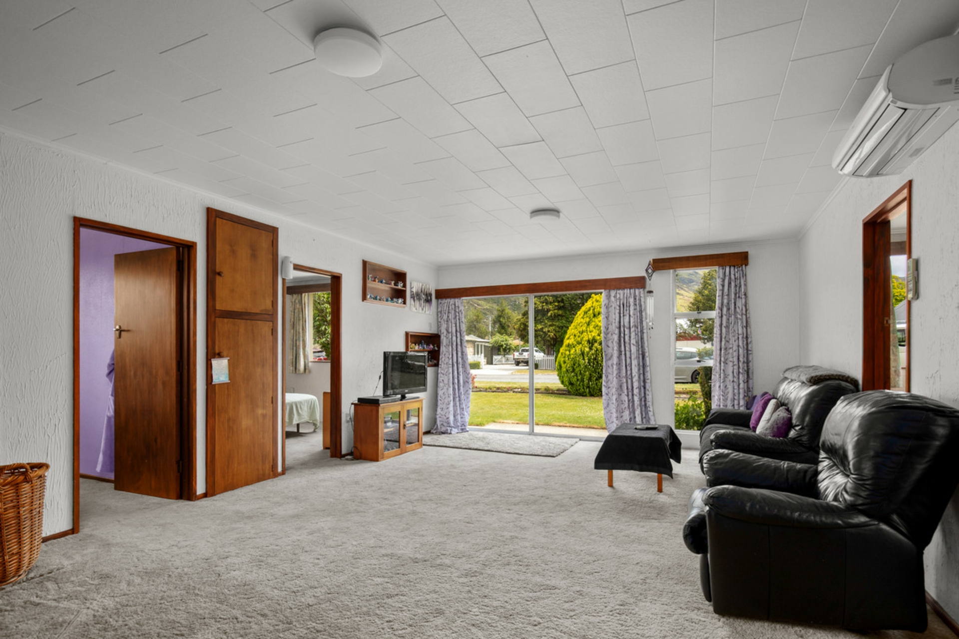 Set on a generous 1,012 m� section, the home offers three bedrooms and open plan living, kept comfortable year round with a wood burner and heat pump. The living area flows through to the kitchen and dining space, which opens out to a covered porch.