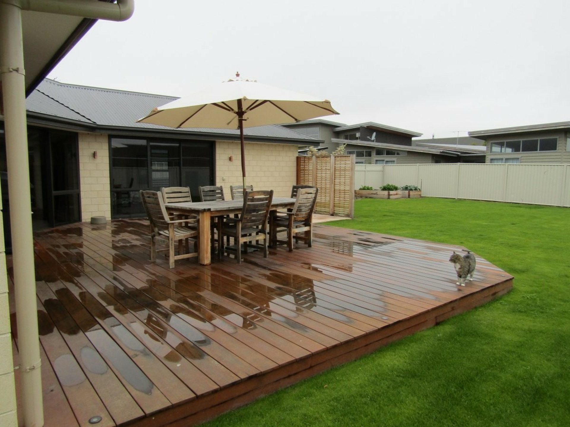 As you enter through the front door you are welcomed with beautiful glossy tiles which completes the tastefully decorated interior, leading through to a stylish entertainers kitchen with walk in pantry and two full size ovens. The open plan living offers entry through to a separate lounge and both the living areas and the master bedroom provides you easy access out to the large Kwila deck where entertainment will be a delight.