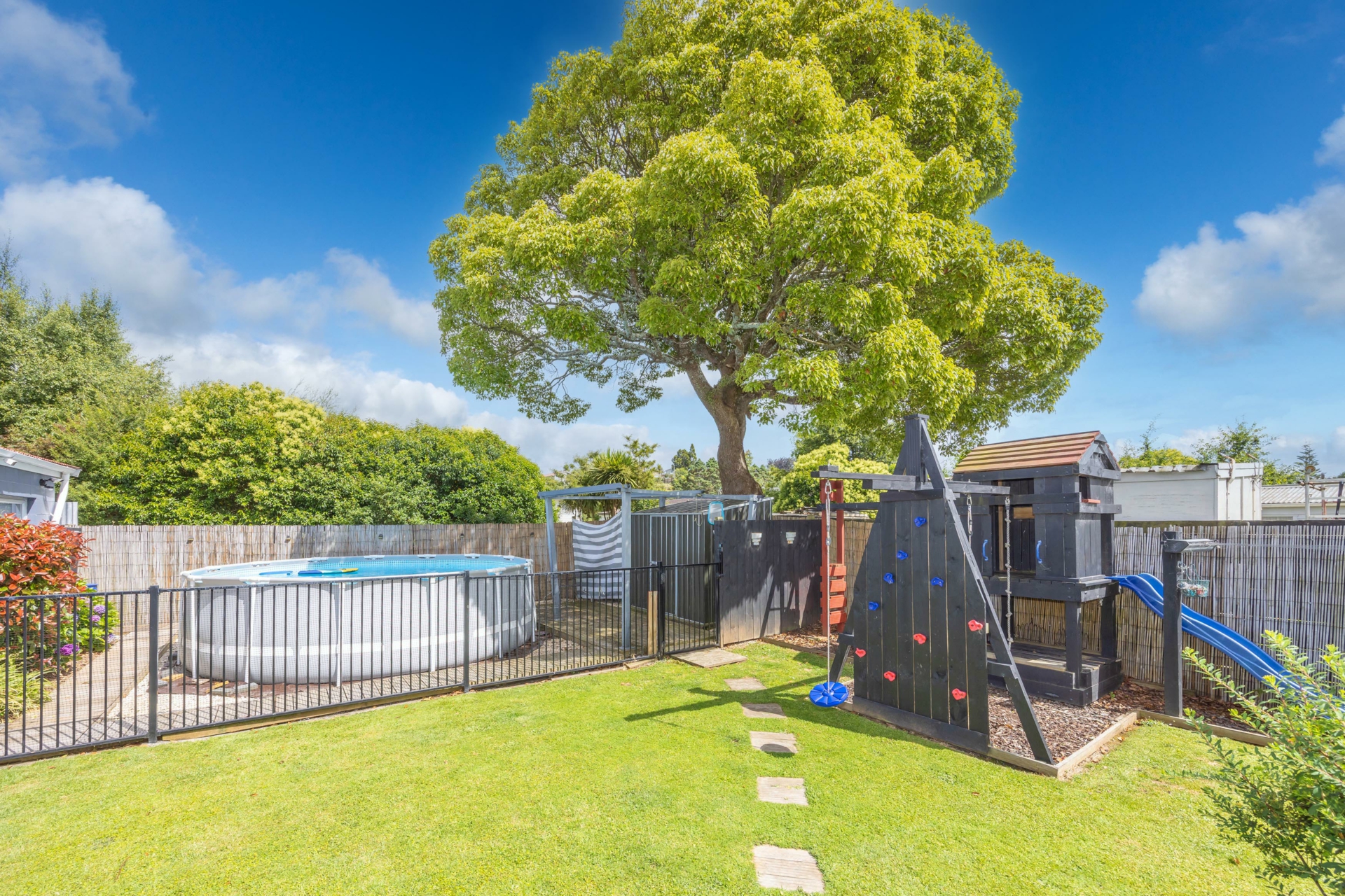 Set on a 678sqm (more or less) fully fenced freehold section, the property is ideal for families and pets. Outside, you'll find an above-ground swimming pool, a garage, and a versatile rumpus area.