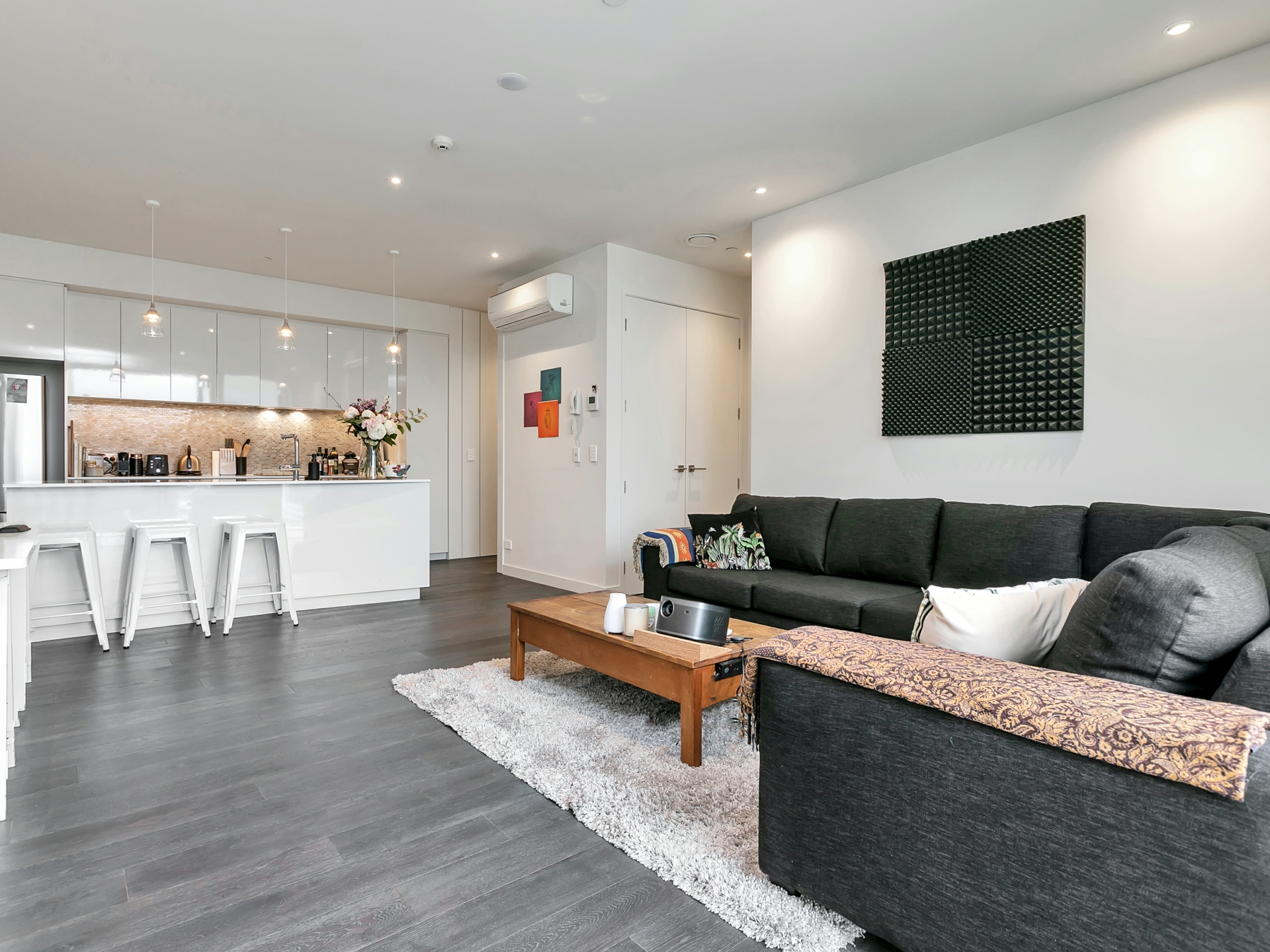 A really spacious high-stud one bedroom apartment is ideal for a young Professional or couple; though DOWNSIZERS should look too. A very clever floorplan makes it feel a whole lot bigger than the 60sqm. Quality appliances thrown in.
