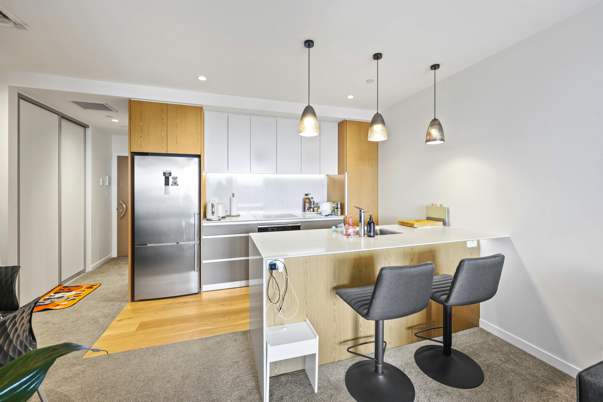 • Bosch fridge, washing machine & dryer included