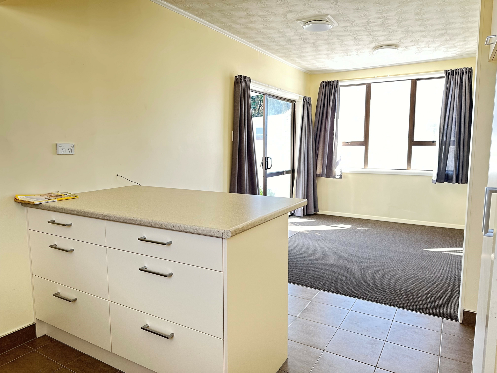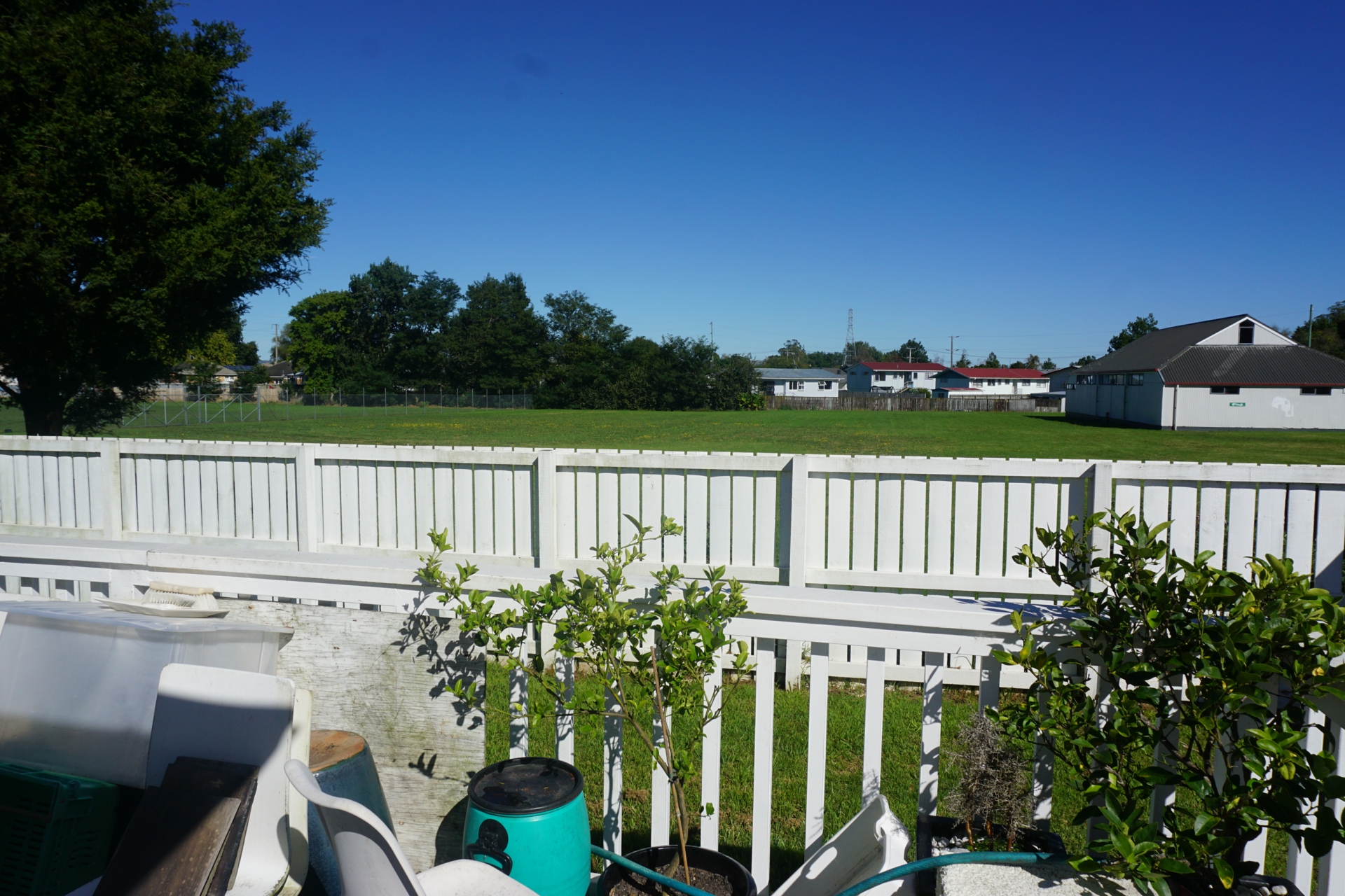 Back house consists of 3 bedrooms, near new kitchen and bathroom, open plan living, views out onto playground.