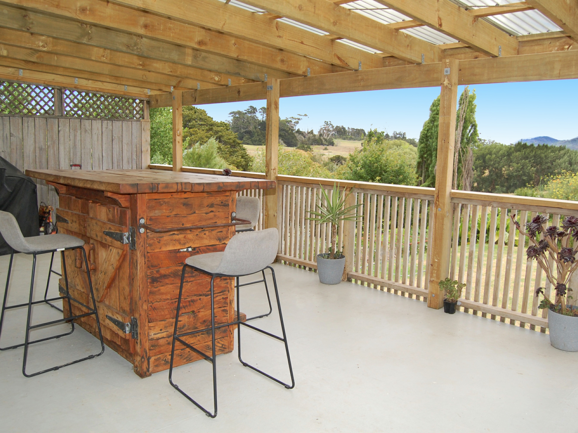Situated on a large 956m2 residential section at the end of the road having that country feeling with a sunny disposition and views of farmland through to the Brynderwyns.