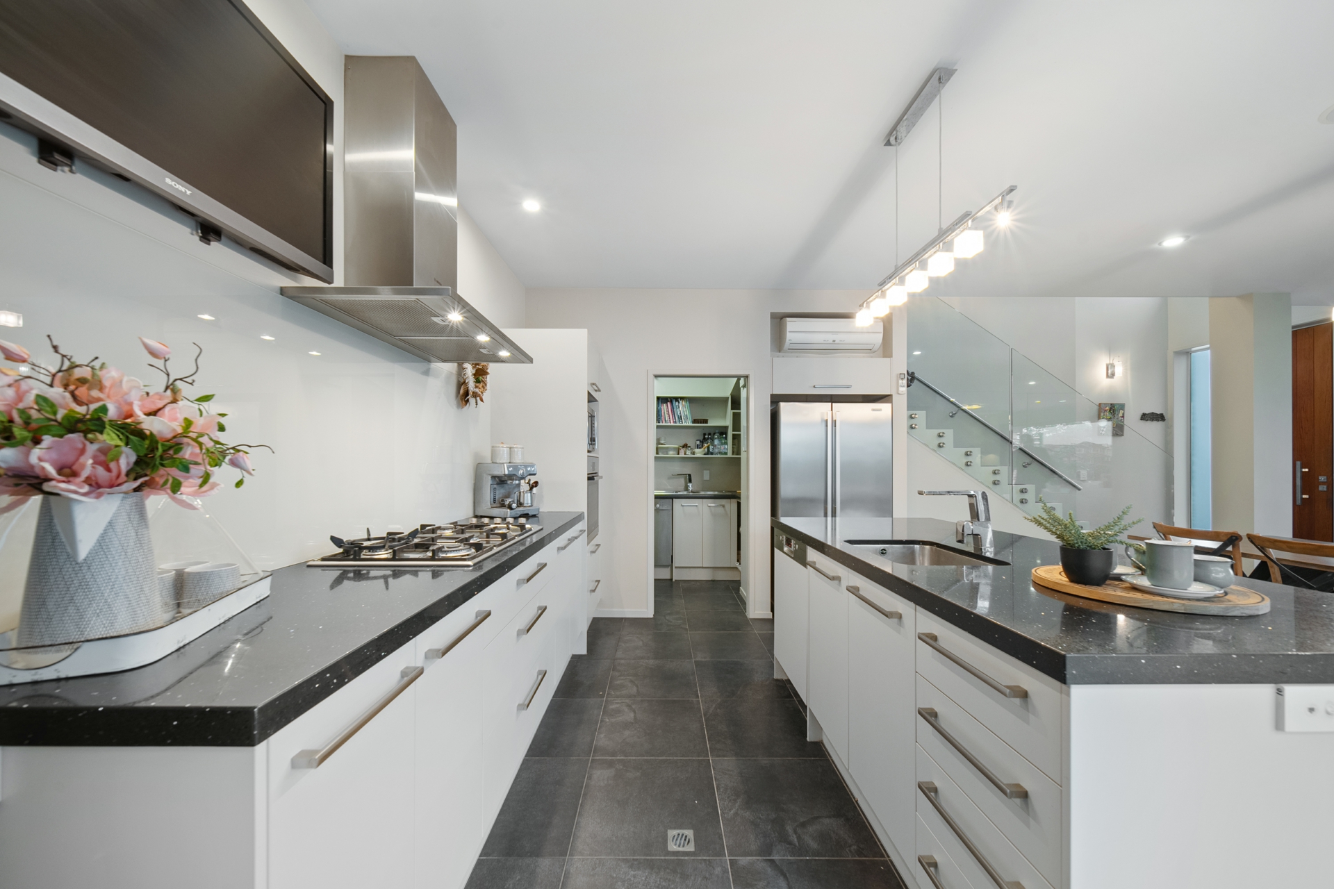 •Designer kitchen with stone benchtops and full scullery