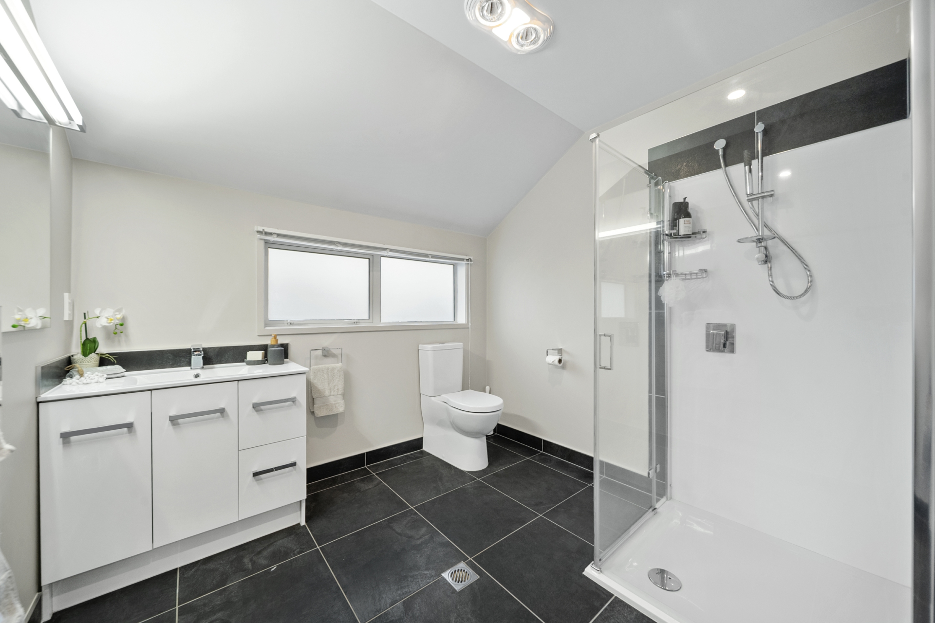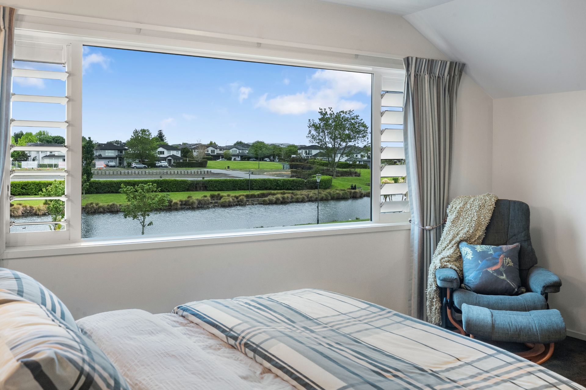 Upstairs, the master suite feels like a lakeside sanctuary with a walk-in wardrobe, tiled ensuite and soft morning light spilling across the room. Three additional bedrooms, underfloor heating, ducted air and an integrated sound system complete this picture of comfort and sophistication.