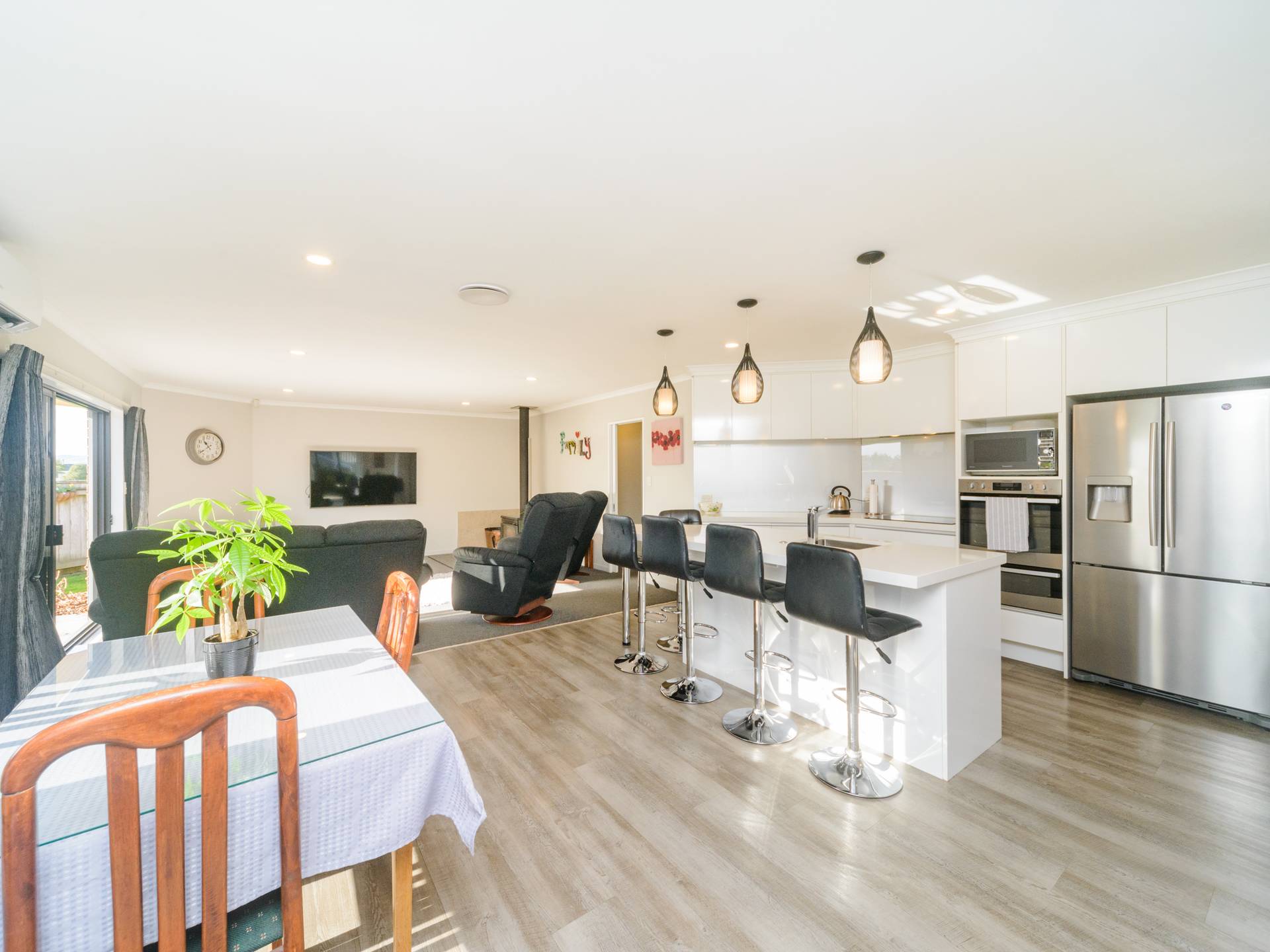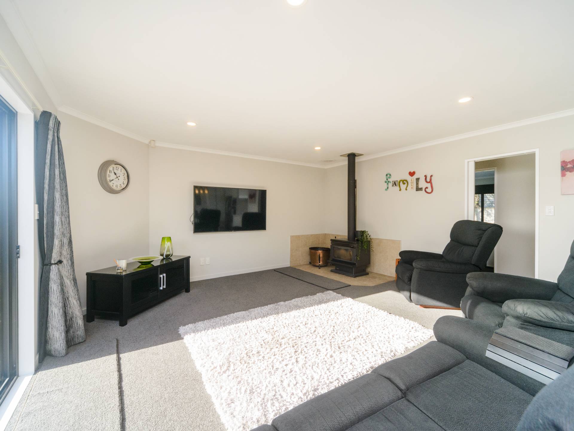 Spacious living with tile surround wood burner to keep you cosy during those colder months. Also equipped with heat pump for added convenance.