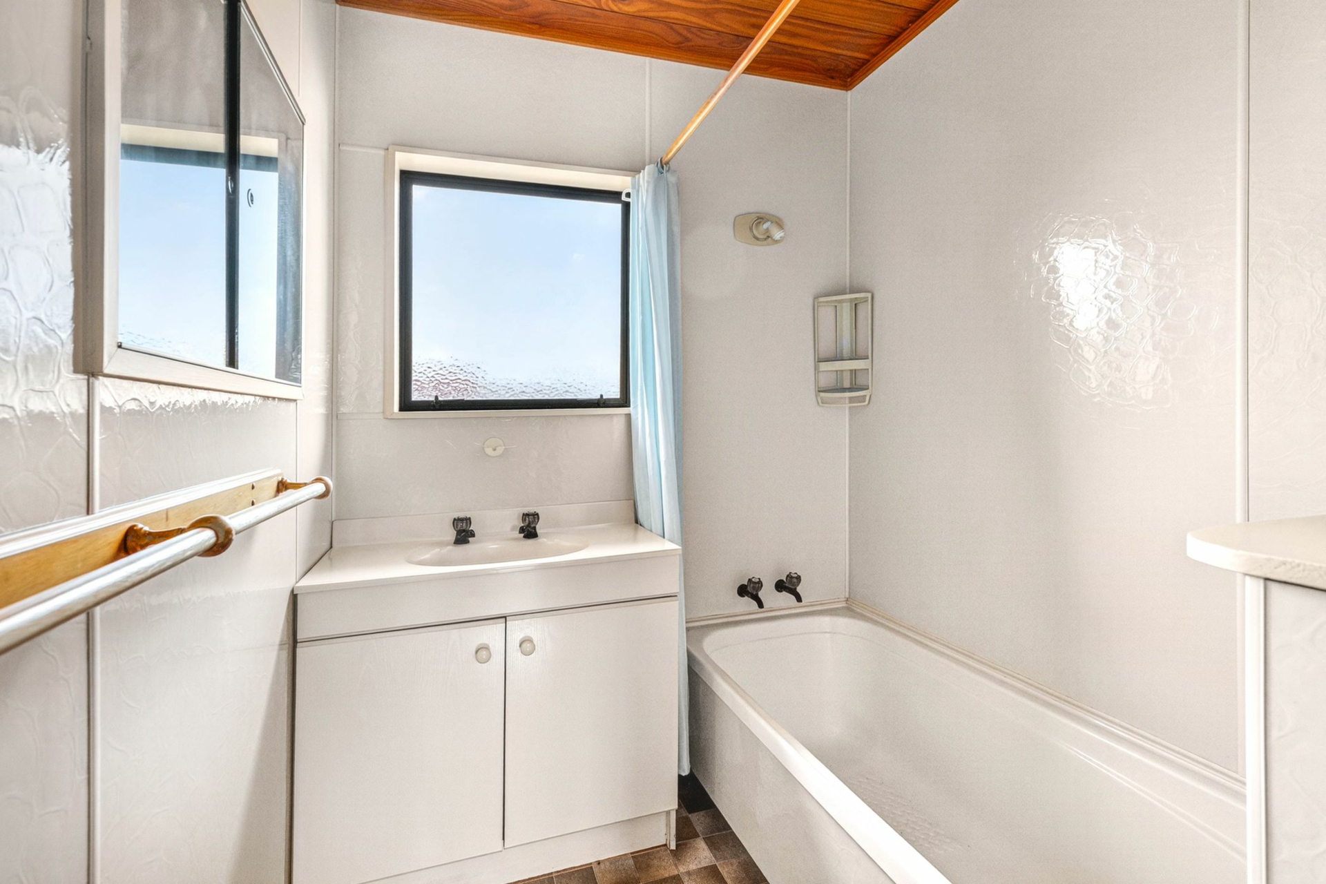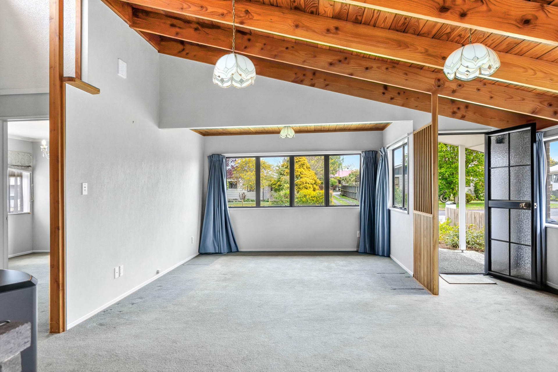 Well designed kitchen with generous bench space and ample storage, featuring a brand-new stove, quality dishwasher, and a waste disposal unit for everyday convenience. The open-plan living area is light-filled and inviting, highlighted by striking sarked ceilings that add both character and a sense of space.