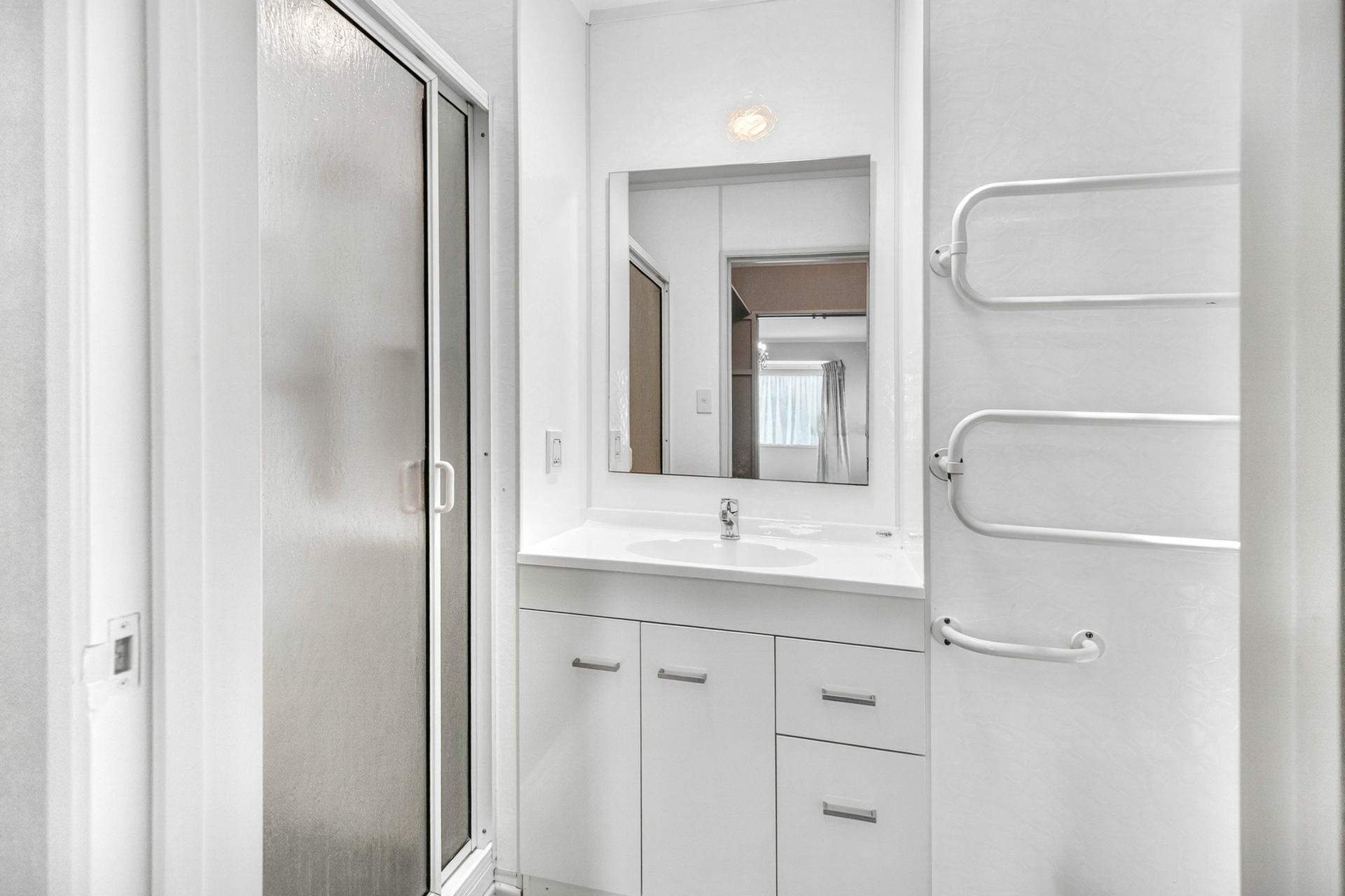 There are three good sized bedrooms, with the master offering a walk-in wardrobe and ensuite for added privacy. The main bathroom is well laid out with a shower over the bath, complemented by a separate toilet and separate laundry for practicality.