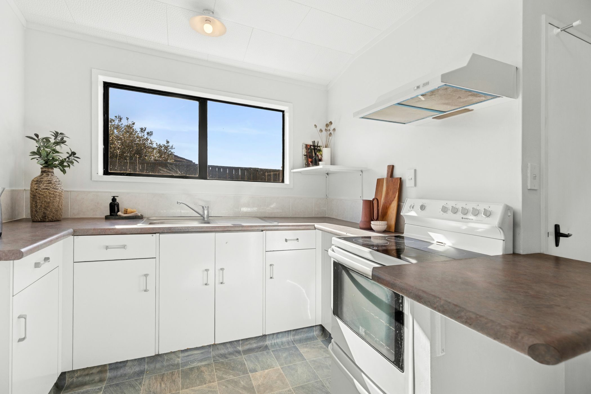 Nestled in a complex of just six, this delightful two bedroom unit offers a blend of comfort, style, and convenience. Built from timeless Hinurea Stone.