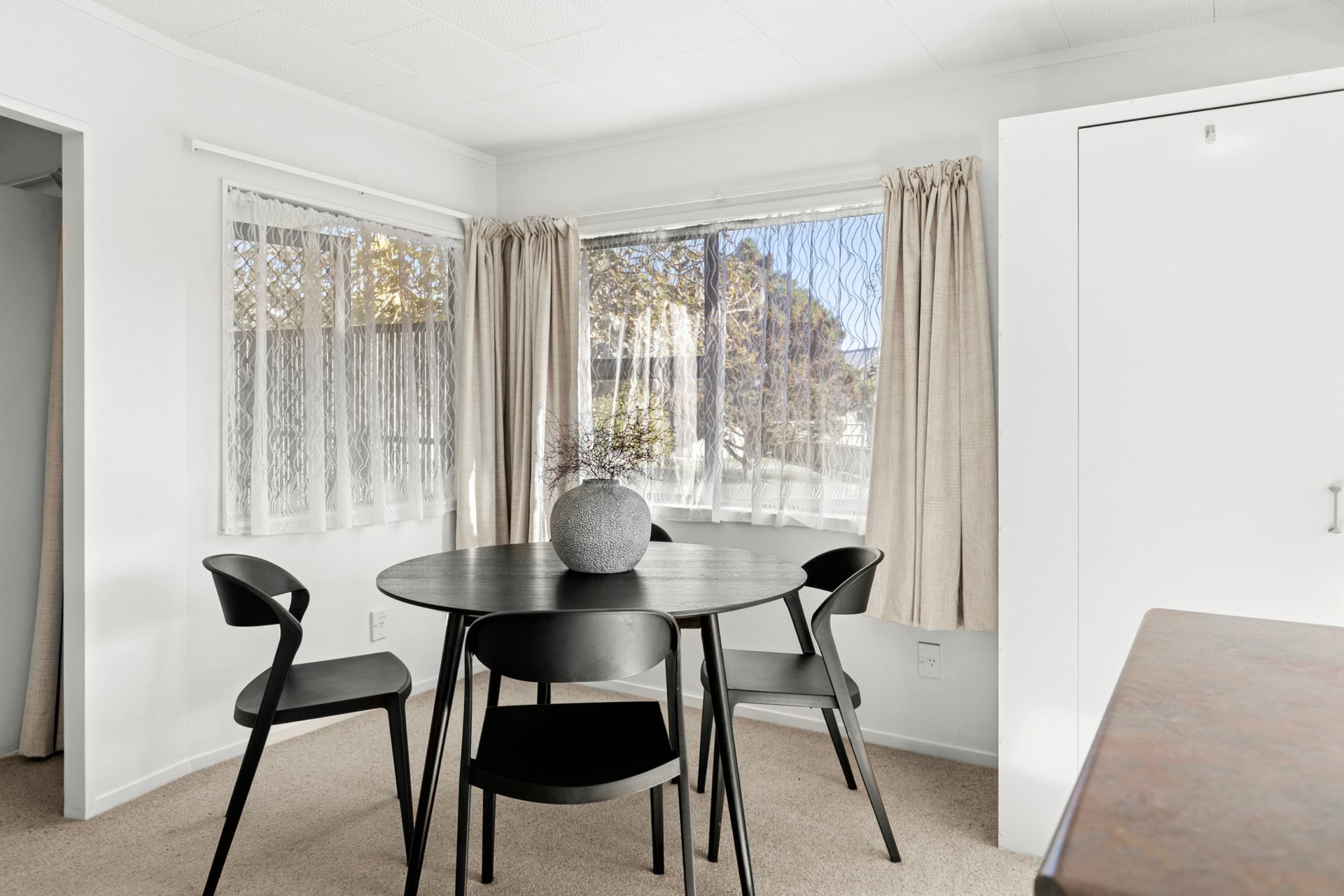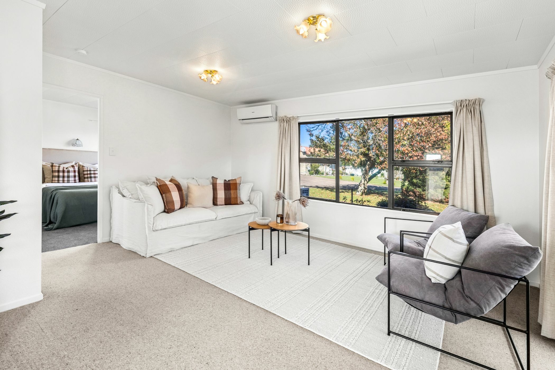 Step inside to find two generously sized bedrooms, a light-filled open plan living area, modern kitchen and lovely dining area. The heat pump ensures year-round comfort, and new drapes paired with tasteful decor make this home move-in ready.
