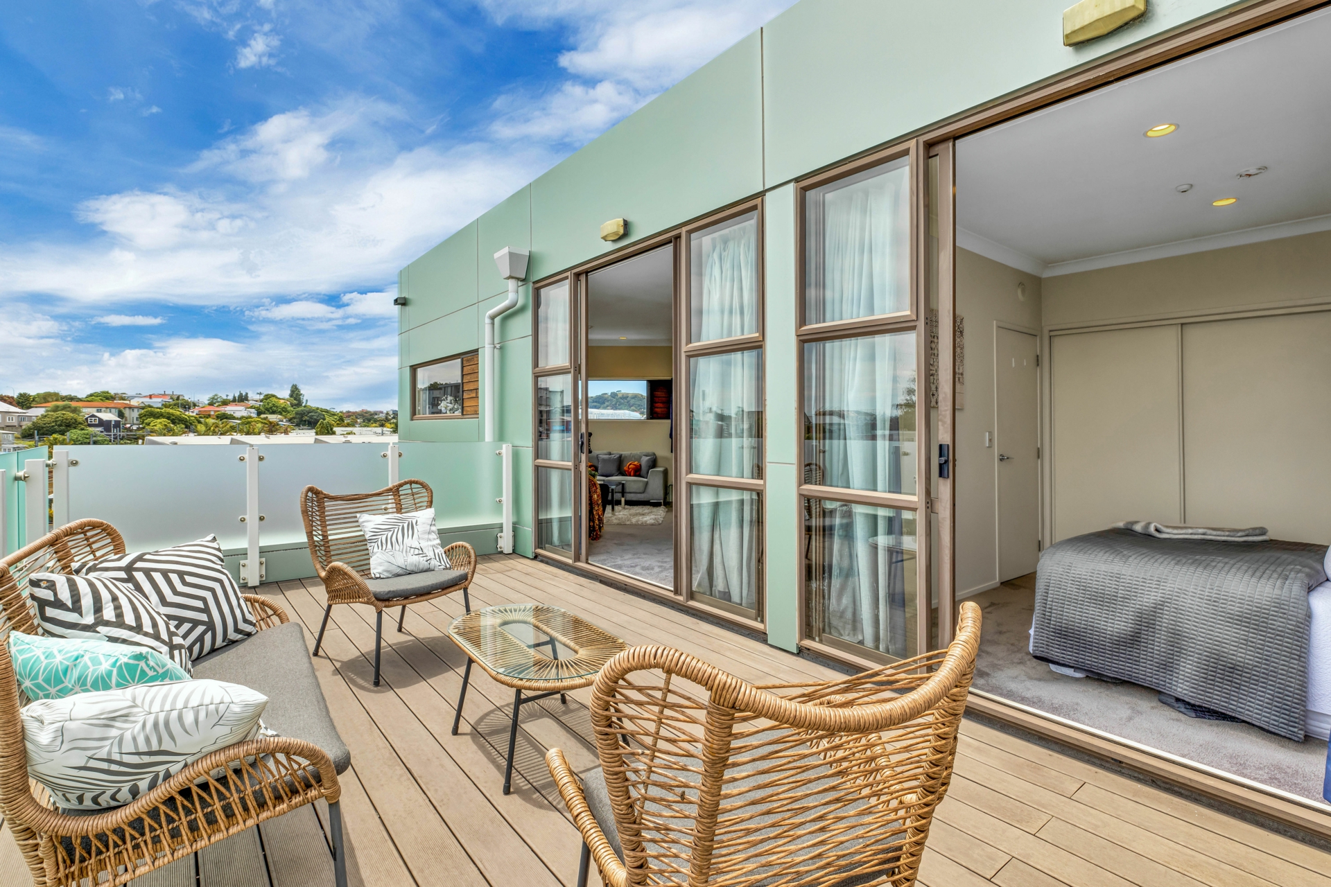 Tucked away at the end with nobody ever even passing your door, means SECLUSION & SAFETY, even in COVID times! Being the top unit, on the Eastern end of the building, this all-day sun-catching apartment is arguably the very best two-bed in the complex. Elevated, very private, north facing deck with city views, perfect for lazy summer get-togethers with friends, makes this, already spacious apartment, feel all the larger.