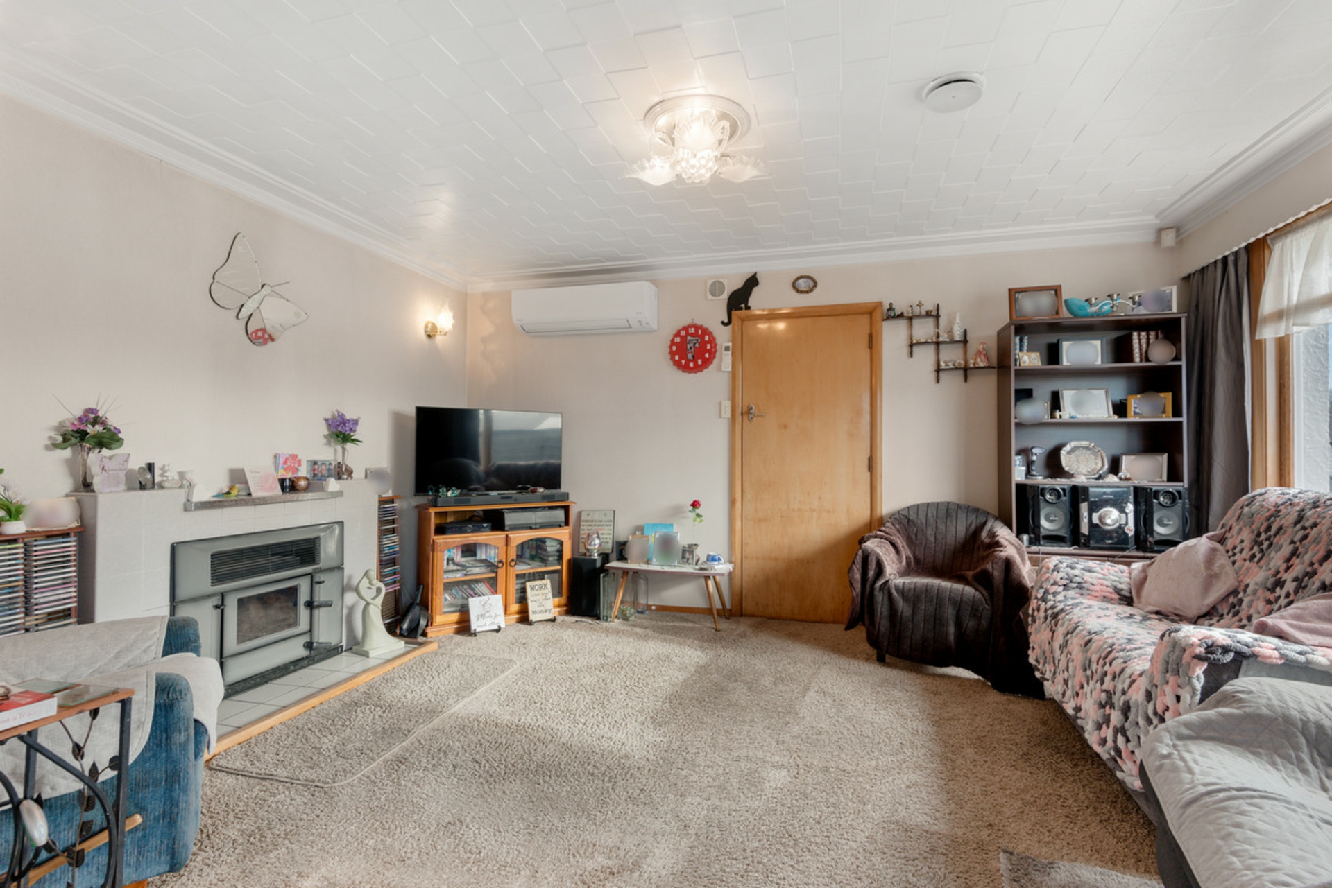 Inside, you'll find a tidy interior with three double bedrooms, a family bathroom, and a cosy living area with both a wood fire and a heat pump for year-round comfort. The kitchen and dining flow naturally through the home, making day-to-day living easy and future updates if you want to add your own style.