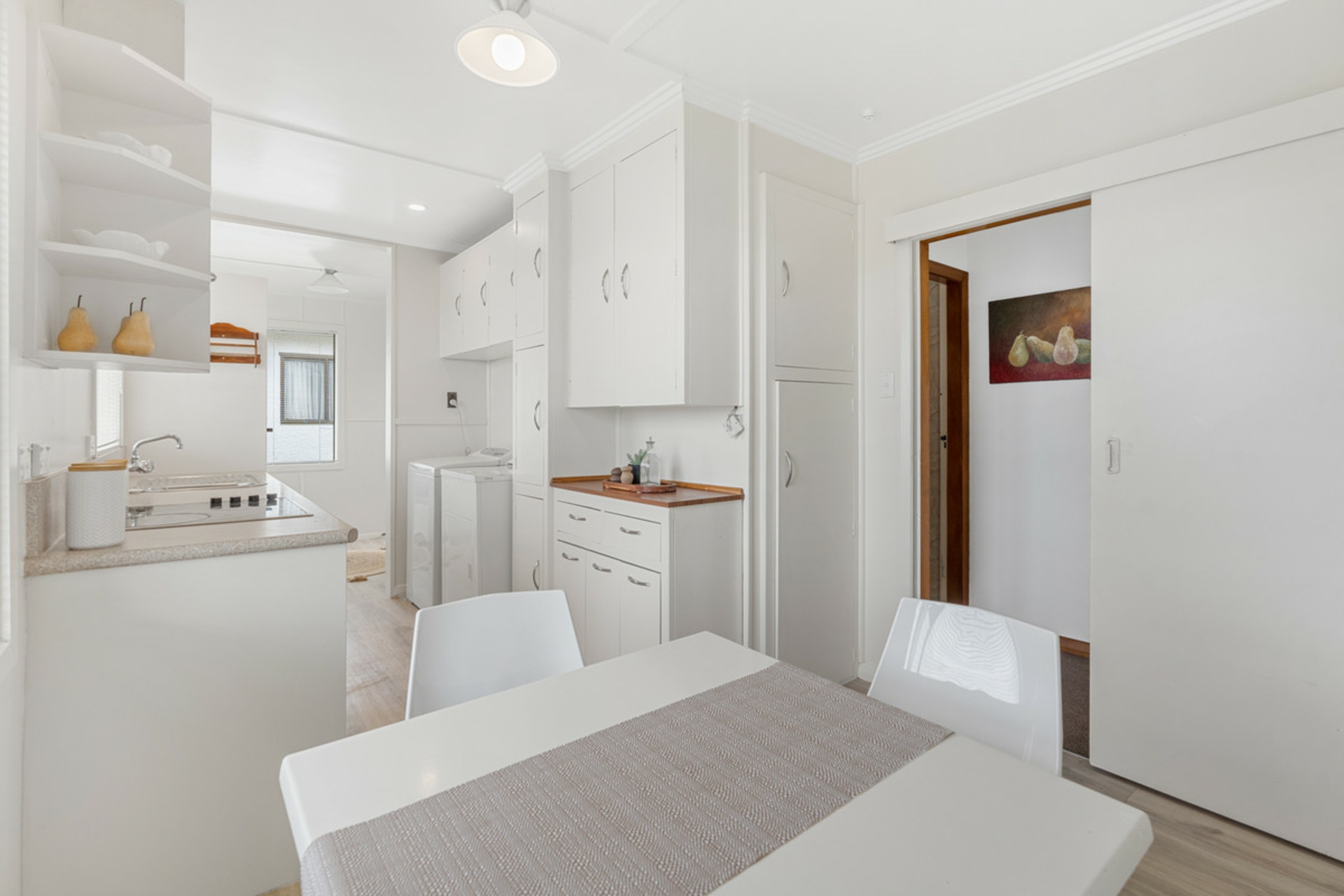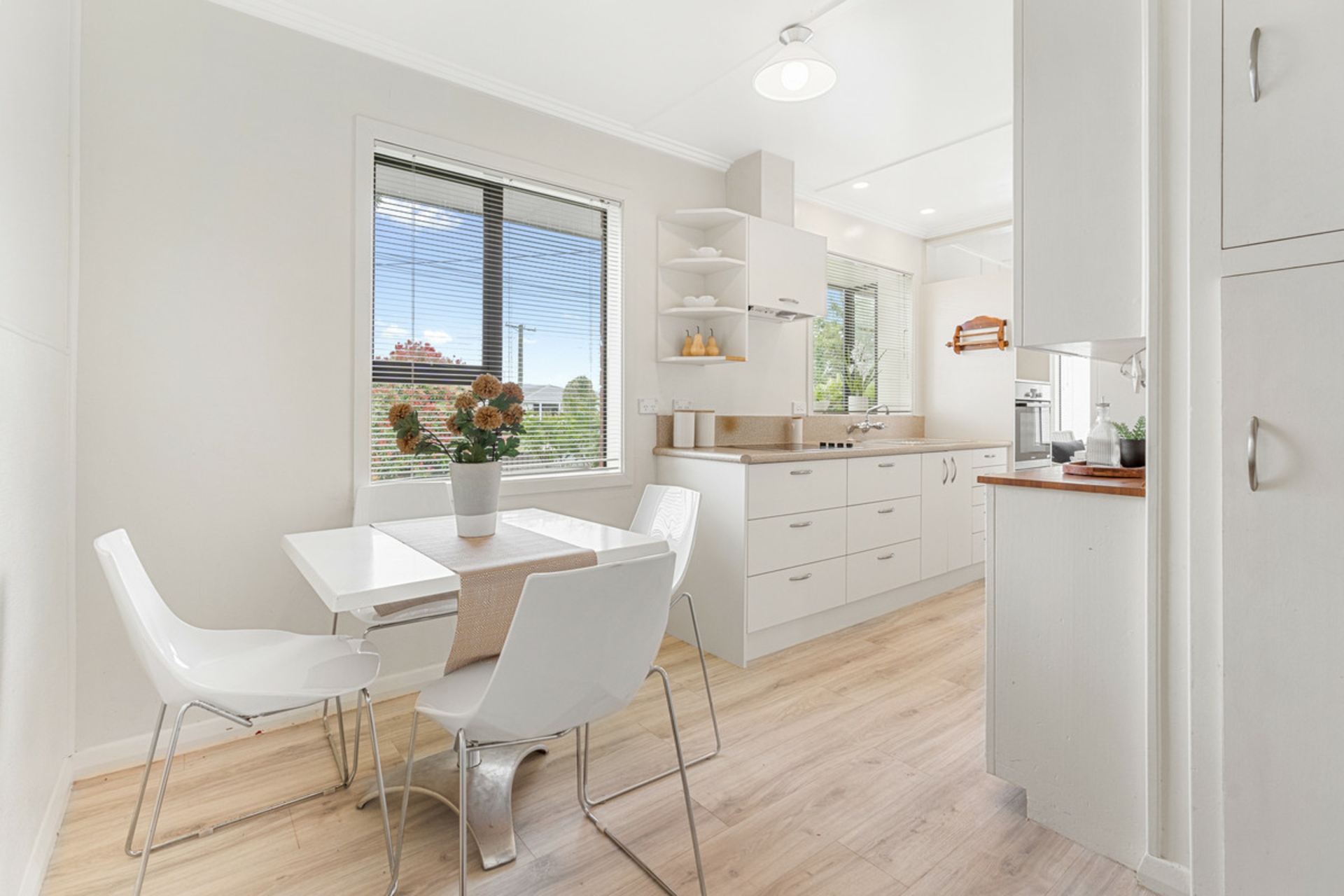 The kitchen provides ample storage and flows seamlessly into the open-plan dining area, making daily living and entertaining easy. Nearby, the bathroom includes a shower and toilet for convenient family use.