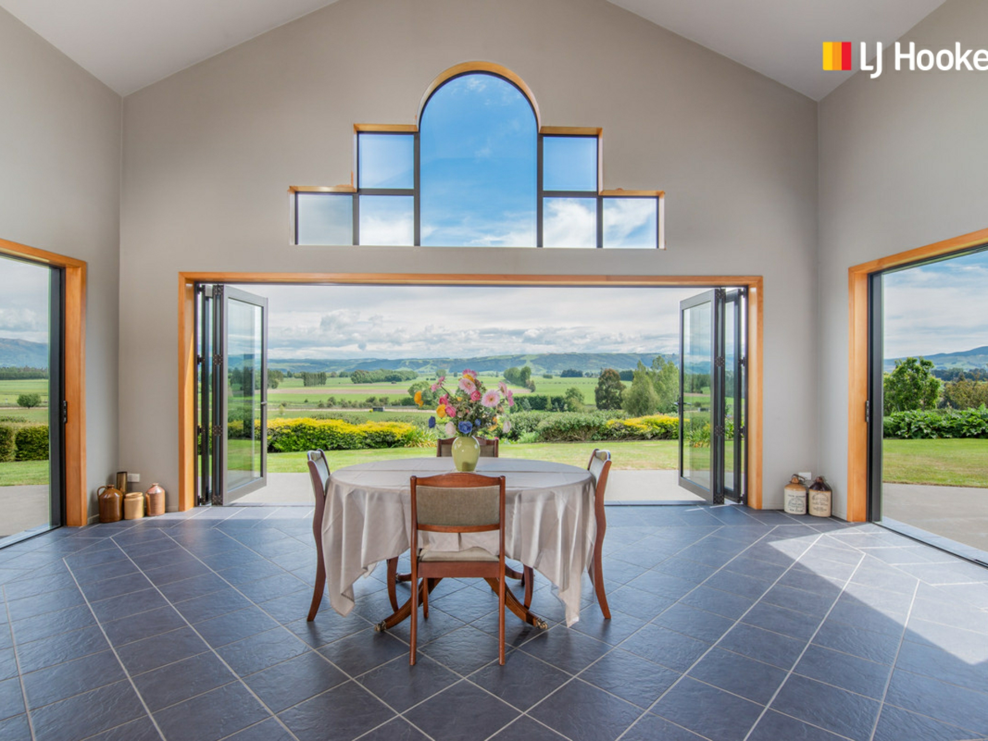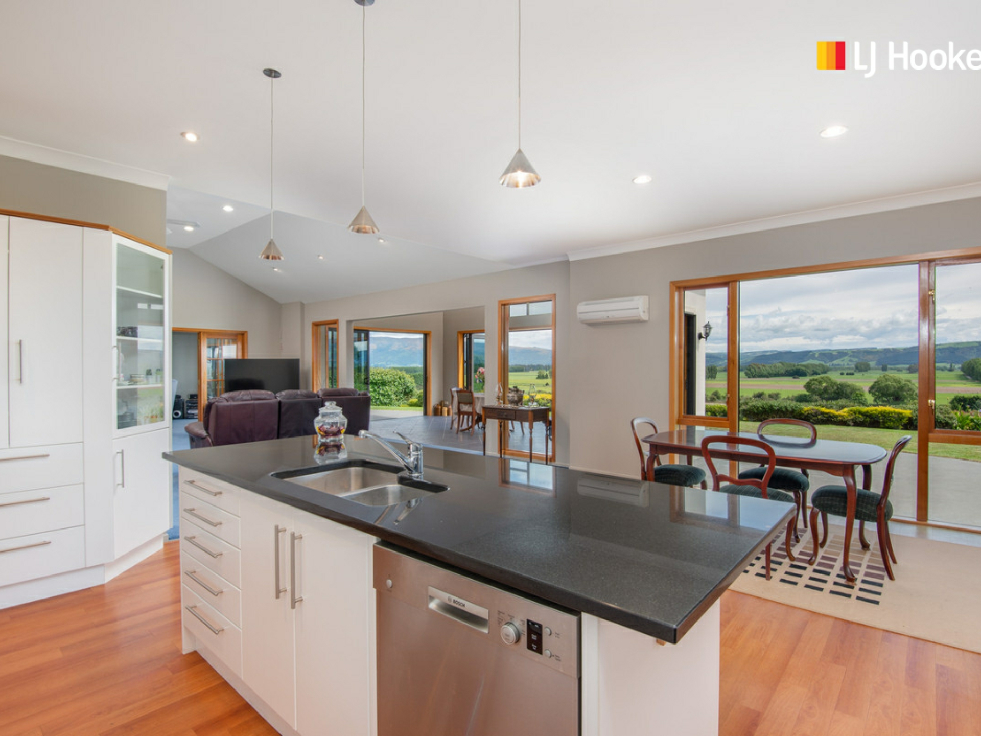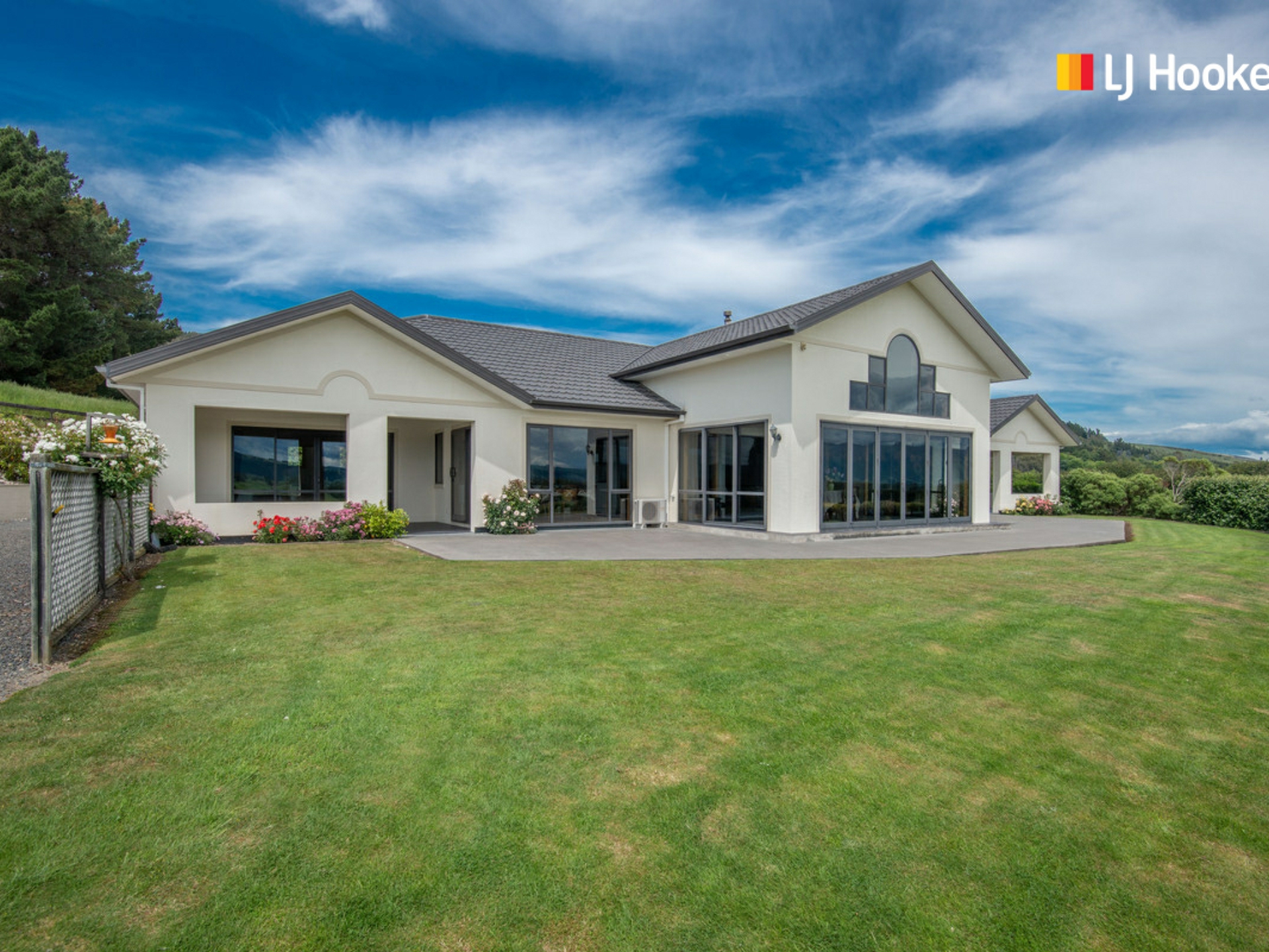 The home was built in 2005 and is generous in all aspects including a modern style kitchen, dining and living area all with stunning views over the Taieri Plains and beyond. In fact, all windows throughout the home have impressive views! The separate lounge with gas fire has access to a covered porch - great for entertaining and there is access to a second covered porch from the dining space.