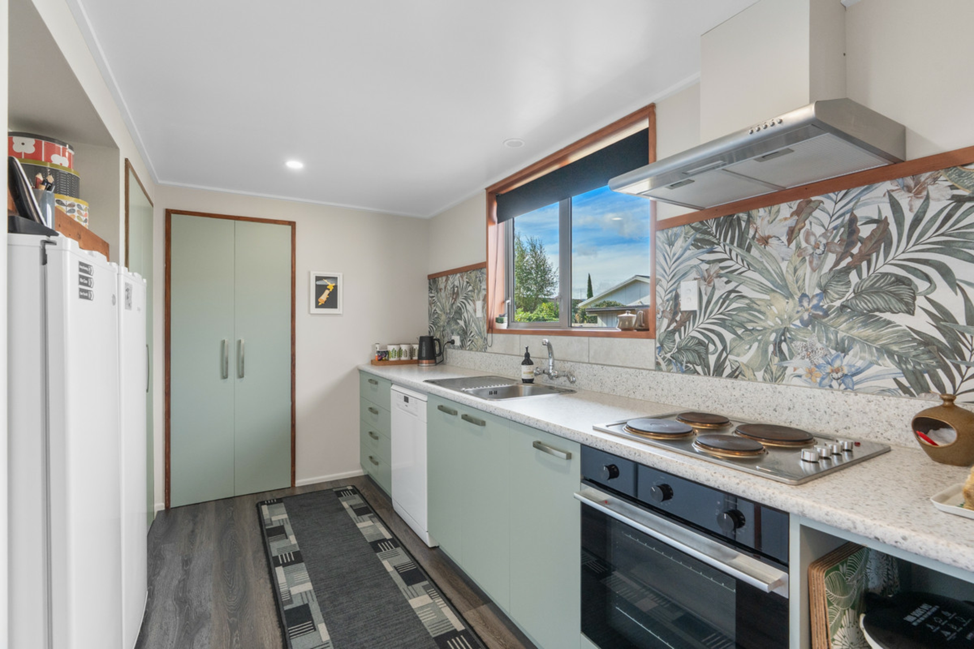 Moving through to the heart of the home, the dining area is kept comfortable year-round with a heat pump and offers seamless indoor-outdoor flow to the sunny deck, perfect for entertaining or relaxing. The modernised kitchen is well-appointed with great storage and enjoys beautiful early morning sun.