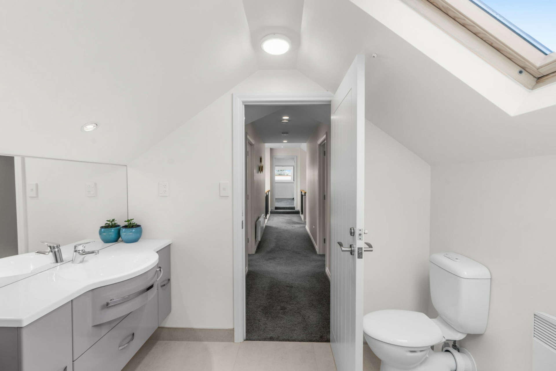 This cleverly designed layout includes two bedrooms upstairs and two down, providing flexibility for families of all ages. The master suite features a walk-in robe and ensuite, while the upstairs office overlooks the dining area below, a unique architectural touch that adds charm and character. Both bathrooms are well-appointed, with the main offering bath and shower options, and there's a separate laundry with outdoor access plus an additional toilet off the garage for convenience.