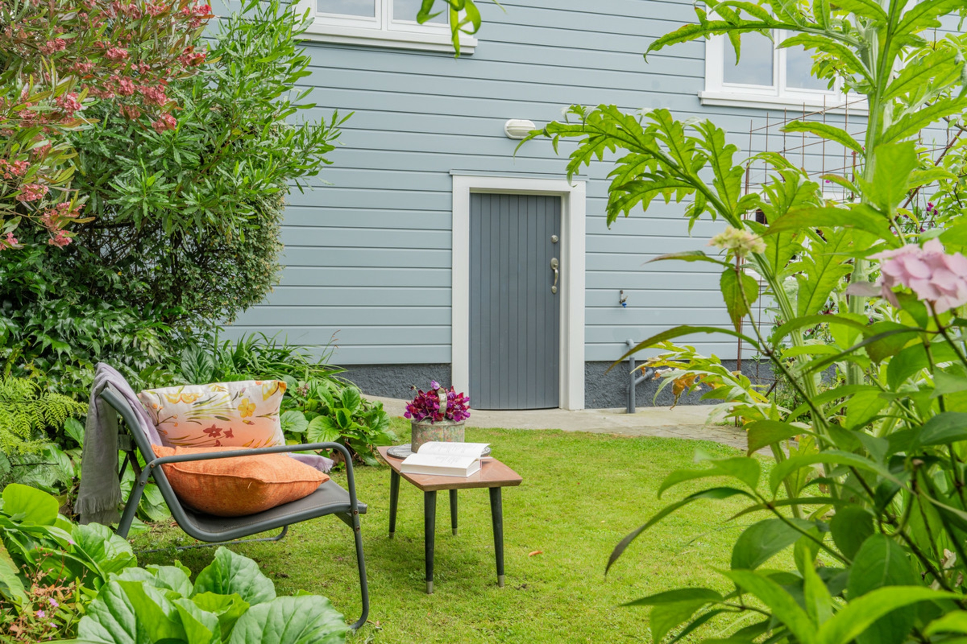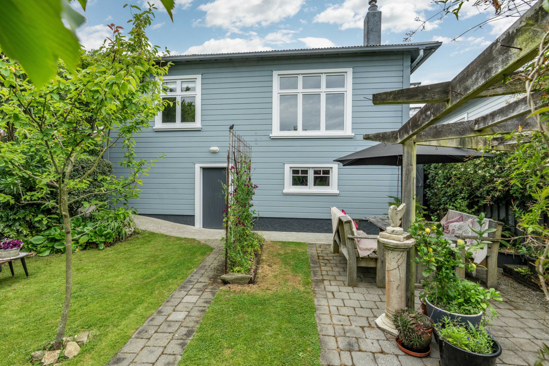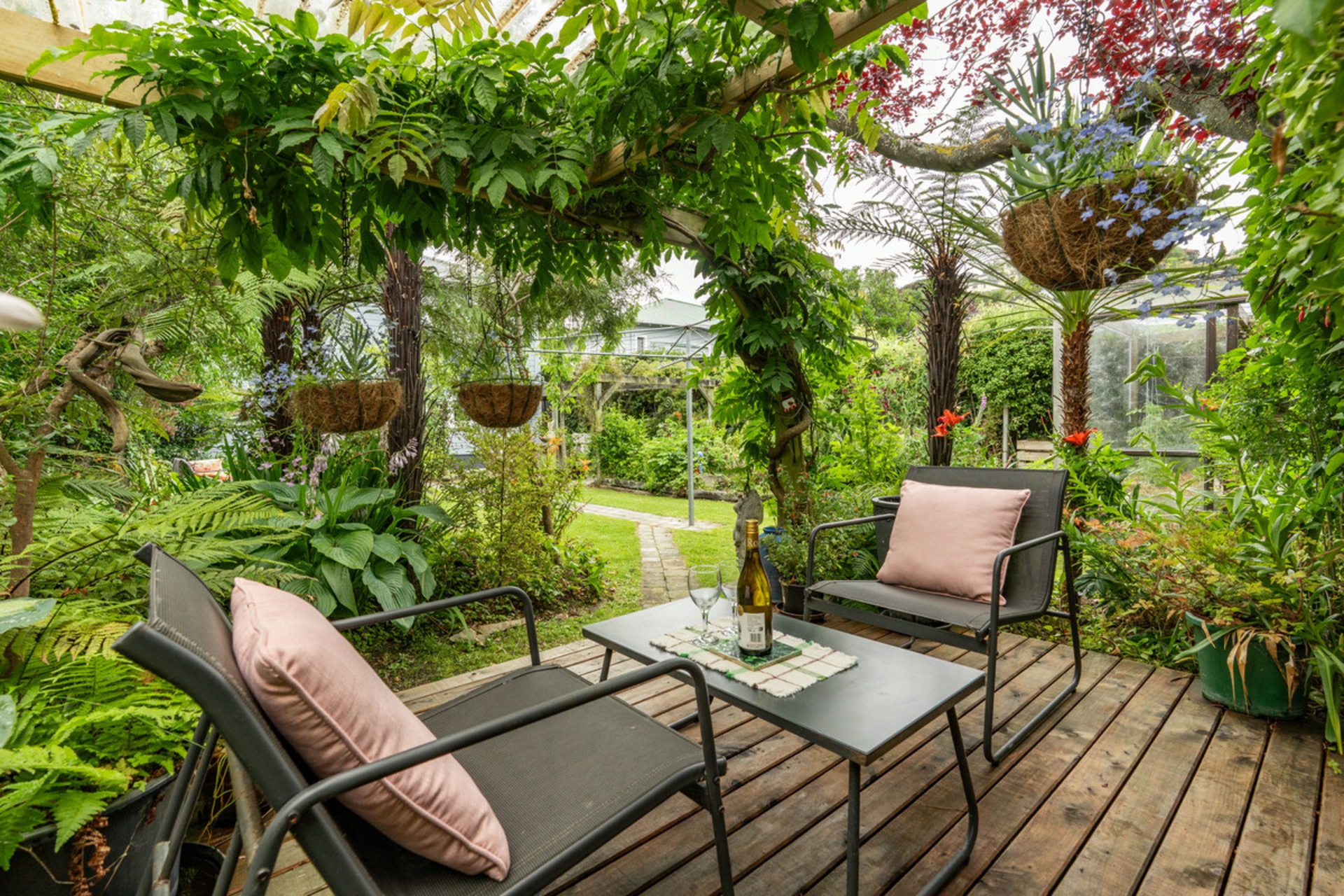 Outside, a private garden sanctuary awaits. Wander among fruit trees, a thriving vegetable patch, and carefully landscaped spaces designed for quiet reflection or sun-soaked afternoons.