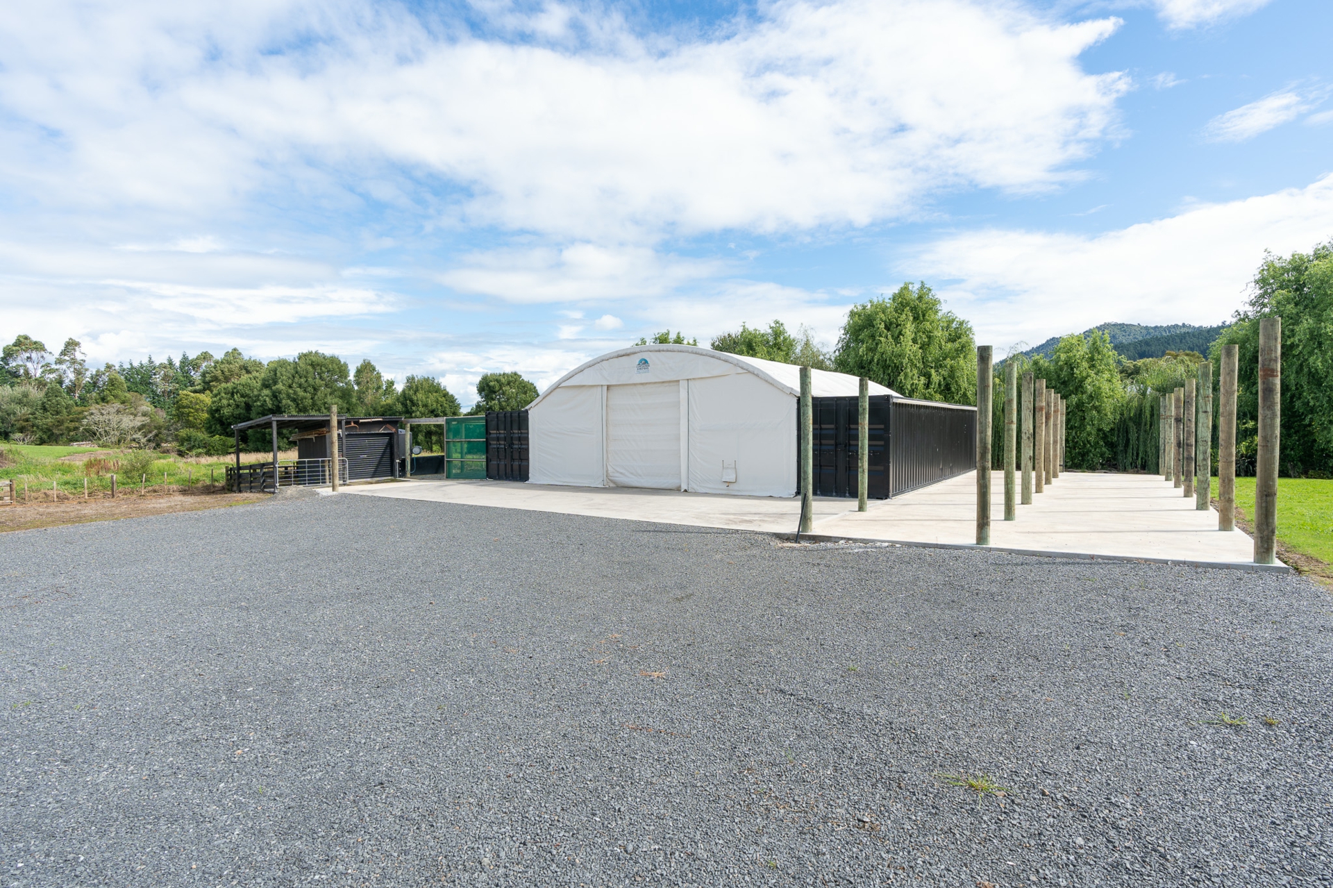 A three-bay shed plus double internal-access garaging means there's plenty of room for all the toys, tools, and hobbies. But wait...there is more...if storage is important, there are 2 shipping containers with a shelter and concrete pad between them!