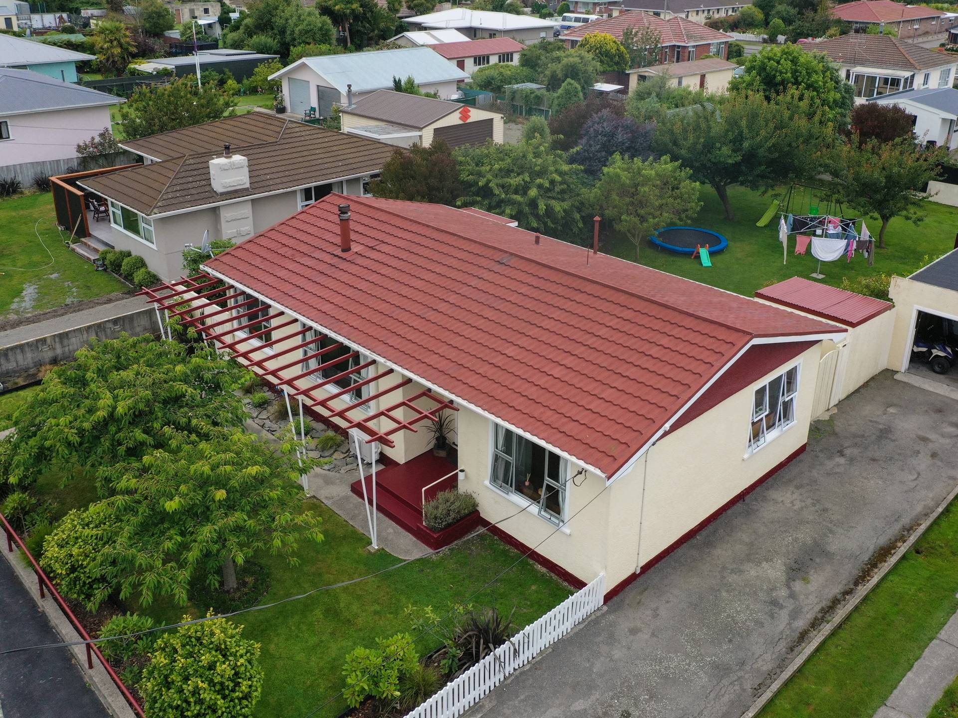 Situated in a sunny position there is much to offer to the new owner including three bedrooms, a modern kitchen/dining with ample storage space combined with a laundry. The living room features a log burner as well as a heat pump with an outlook to the street. The bathroom consists of a large wet floor shower, vanity, and toilet along with another separate toilet. There is single car garaging, off street parking, utility shed, and another covered in area perfect for storing children's toys or the lawn mower. Surrounded by established fruit trees and situated on an 809m2 fully fenced section - this is an ideal starter package for a family!