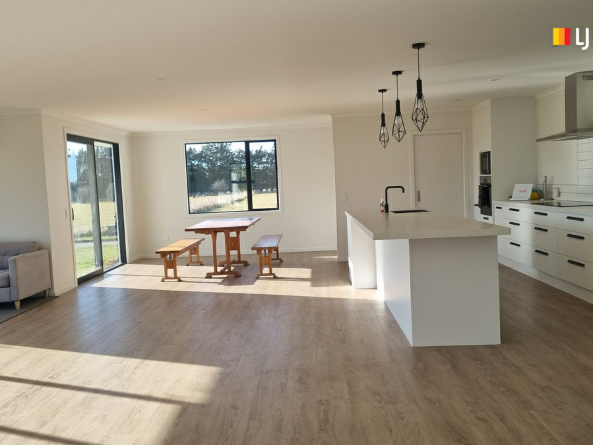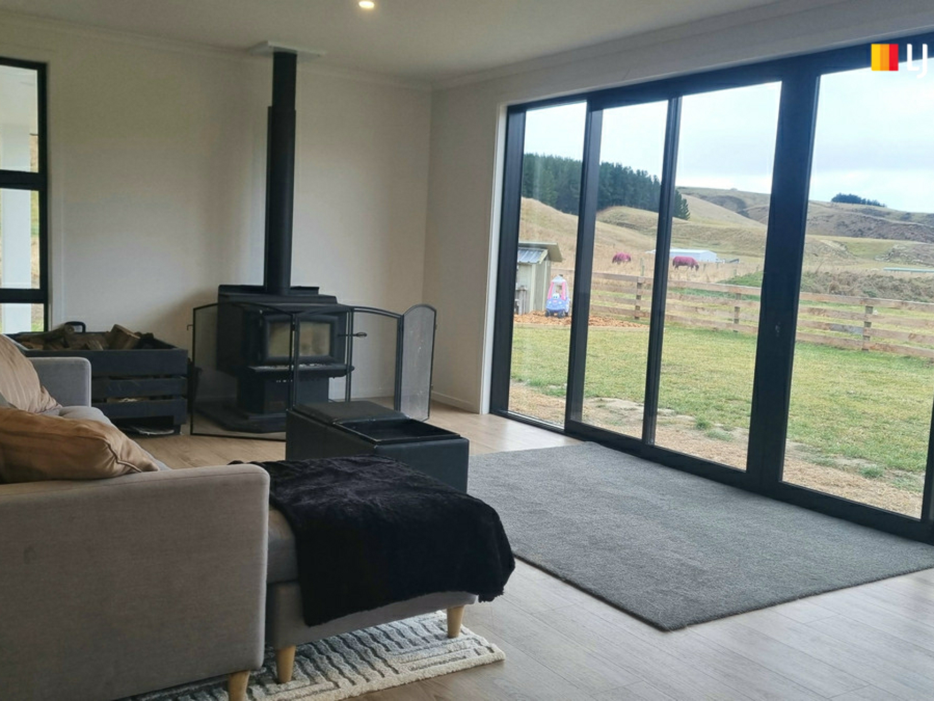 The picturesque windows offer rural views from all angles as well as allowing natural light to filter through. The spacious kitchen/ living and dining area is the hub of the home, with a separate lounge a great space for the kids to relax and enjoy their own space. Heating is by a wood burner and heat pump. The kitchen is well positioned to entertain and engage with your guests. The walk-in pantry provides abundant storage for all your kitchen needs.