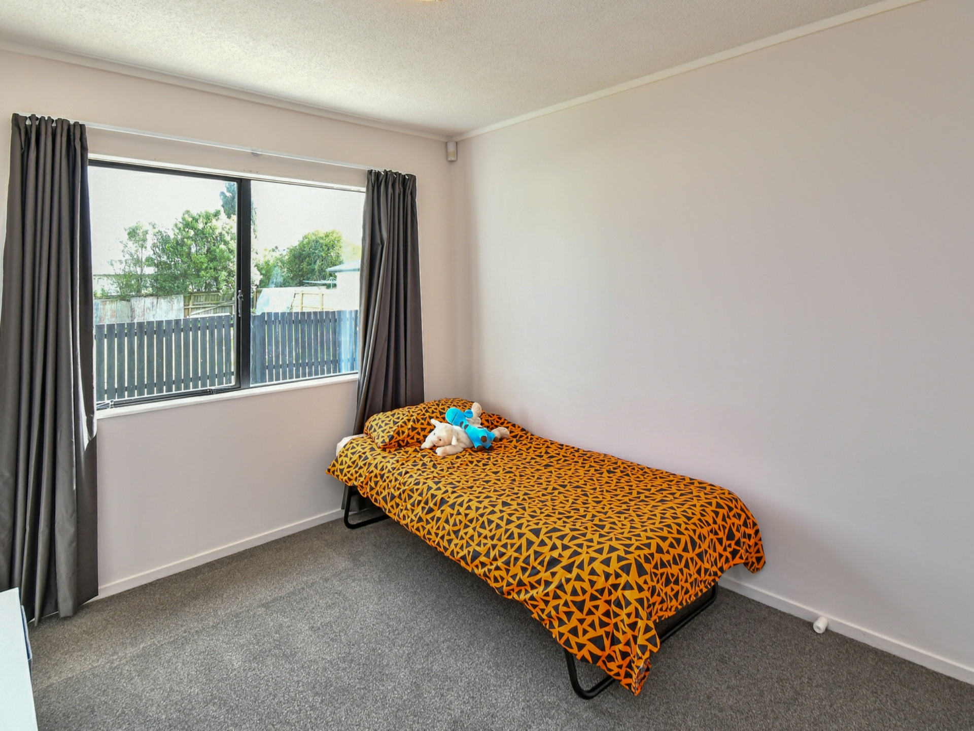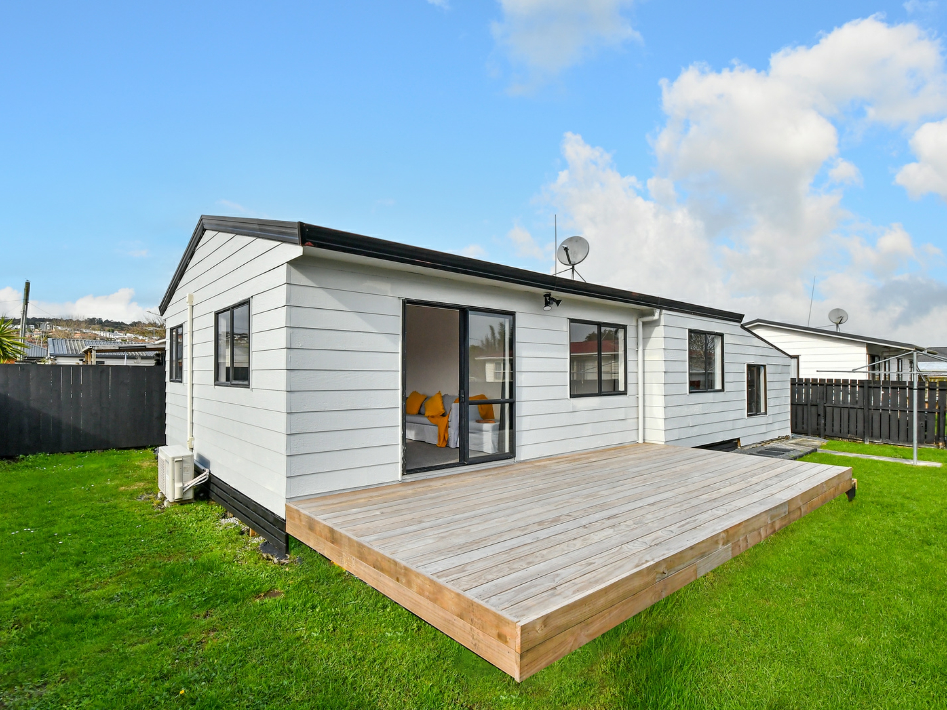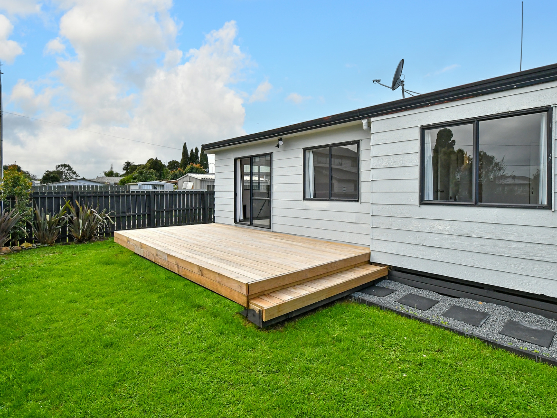 -Sunny & fenced low maintenance section safe for both the children and pets. Complete with spacious decking/entertaining area