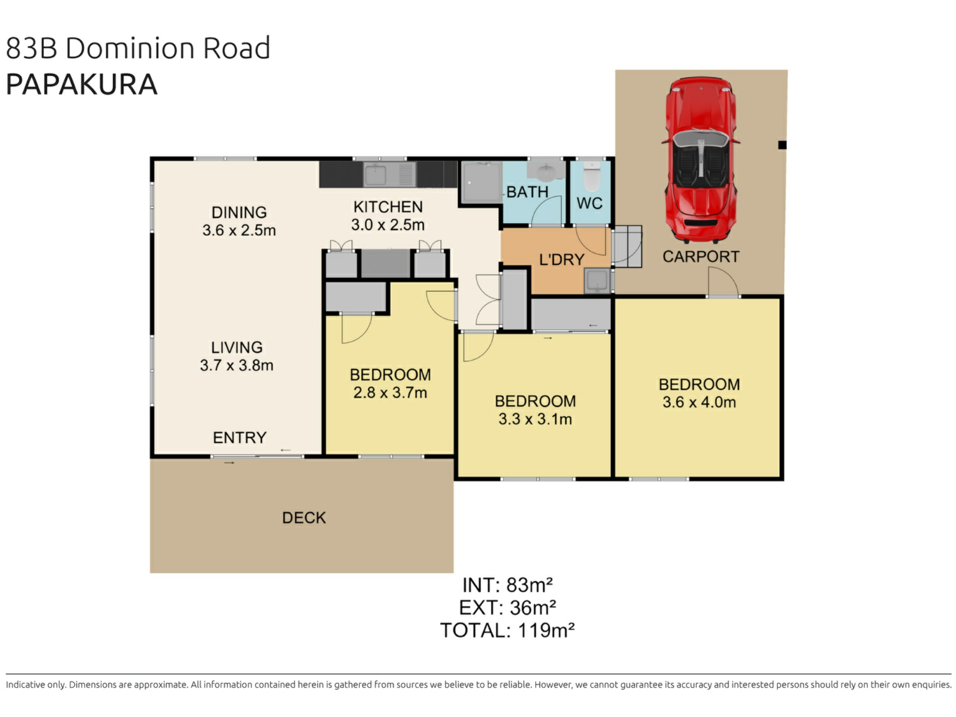 -3 generous bedrooms (two with internal entry and one with external entry - could be used as an office or rumpus)