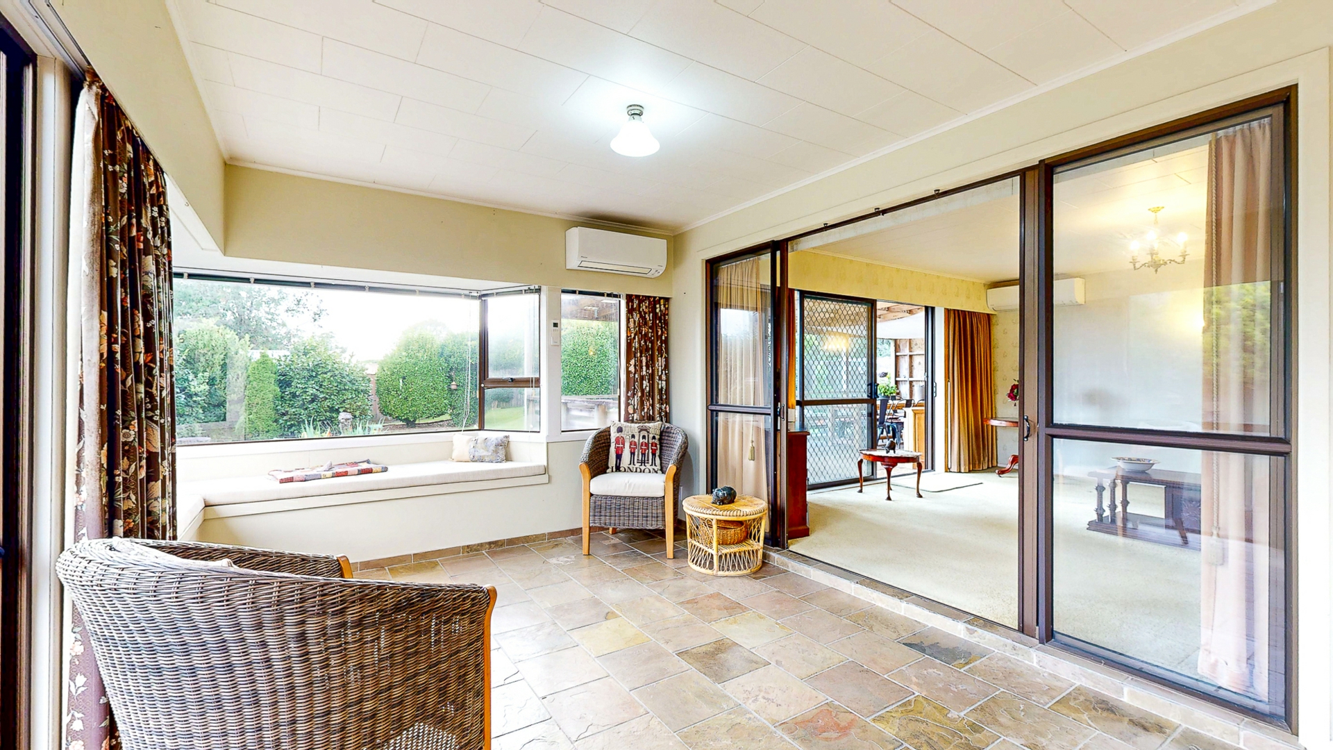 At the heart of the home is the large kitchen with open-plan dining and sitting area, complete with charming bay windows and built-in bench seating - an inviting space for family meals and gatherings. In addition, a separate formal dining room provides an ideal setting for entertaining guests or enjoying special occasions. A separate, spacious lounge provides a cosy retreat with an open fireplace, perfect for those cooler months.