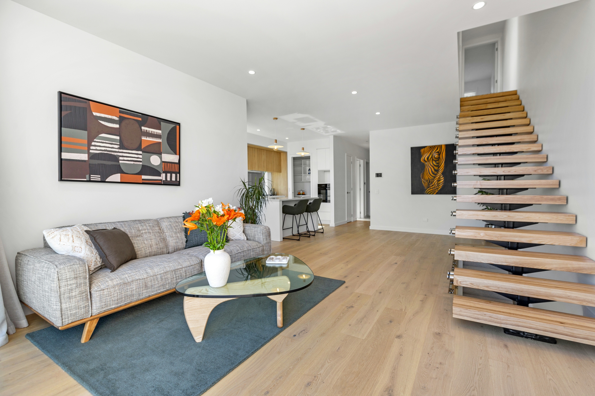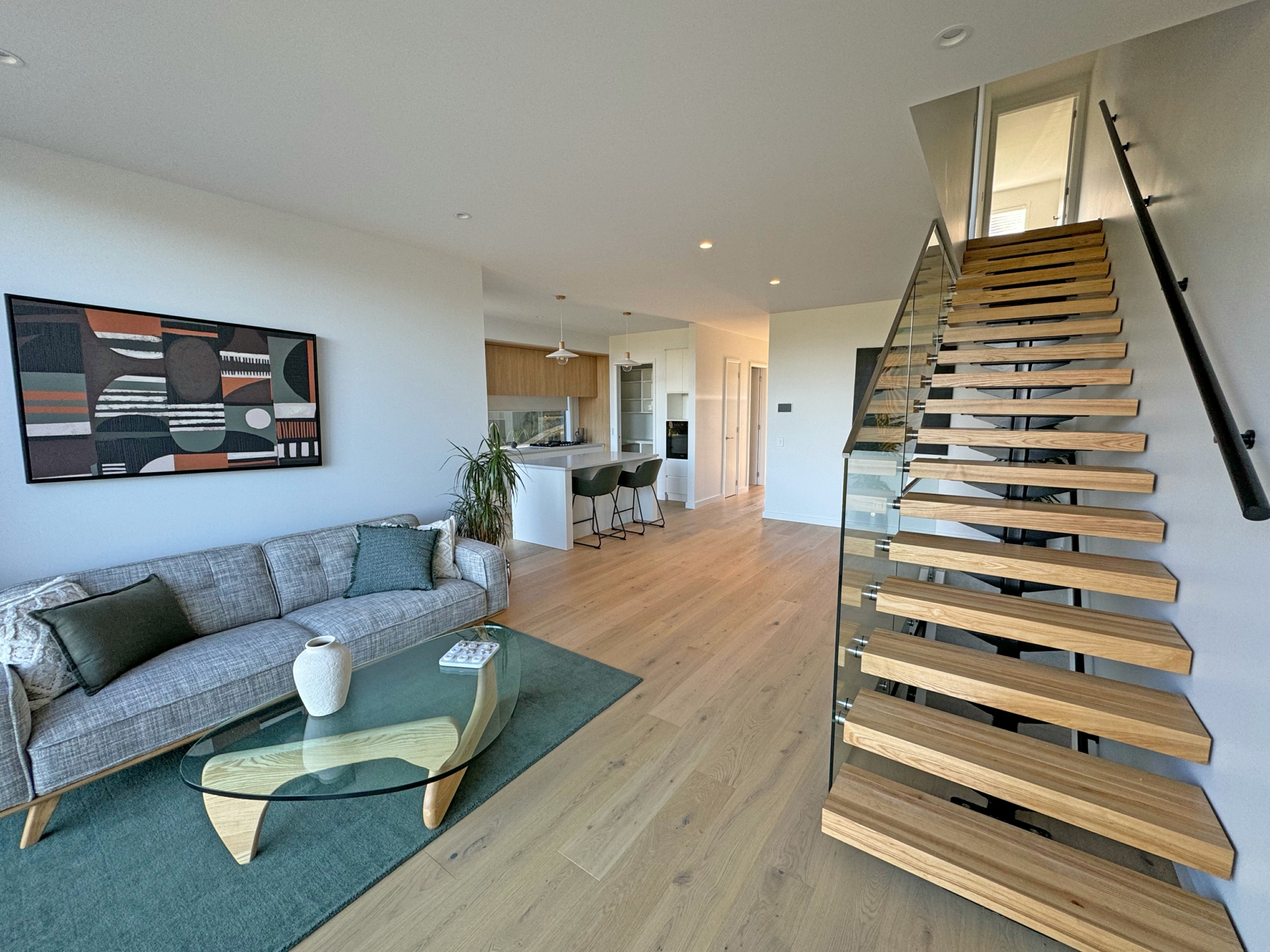 Ascend the bespoke floating stairwell to discover the luxurious master suite. Enjoy serene river views, a tiled ensuite, and a spacious walk-in wardrobe. An additional office space or nursery completes this level, providing versatility to suit your needs.