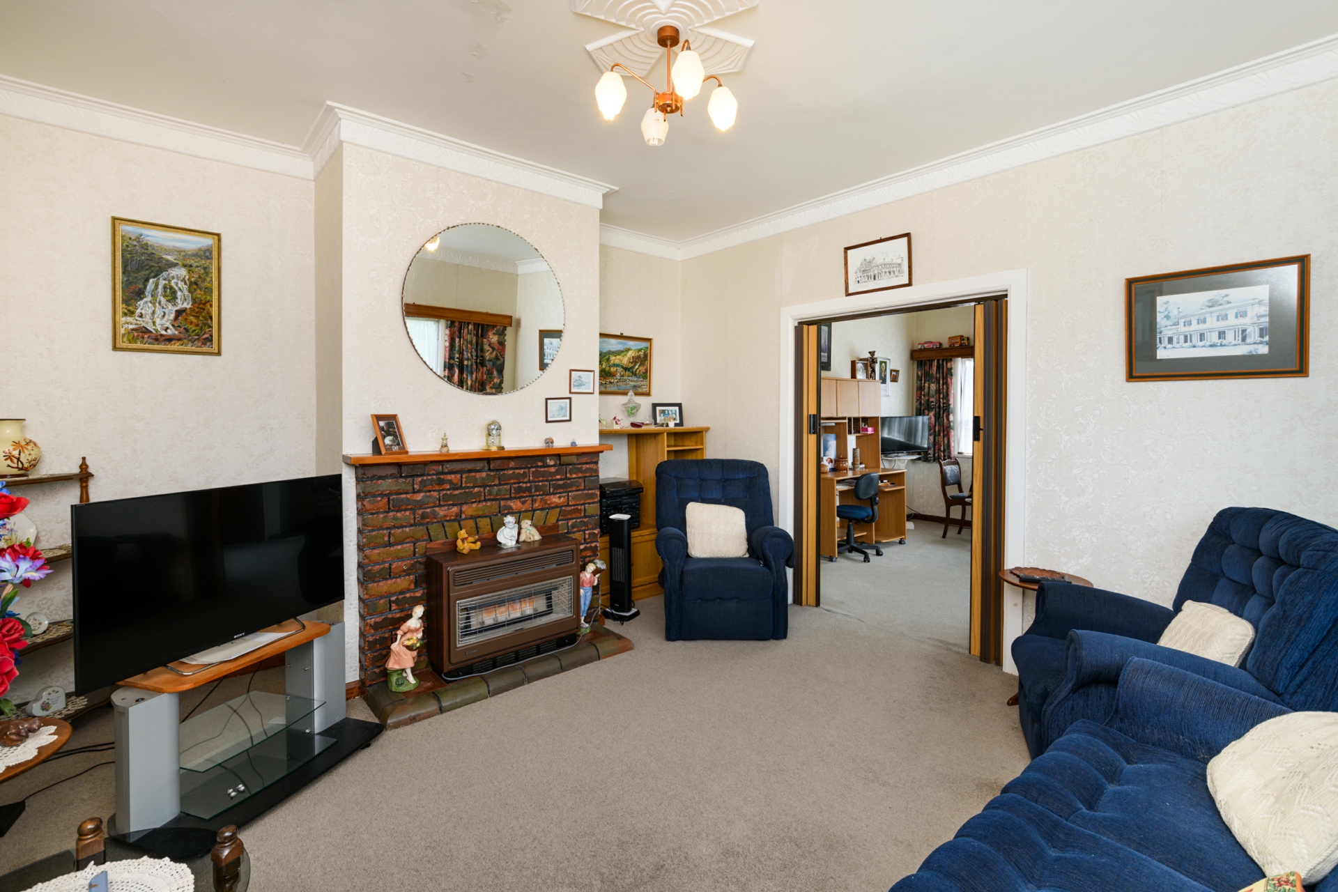 Inside, the home features three double bedrooms, each with built-in wardrobes. Two sun-soaked conservatories, including one at the front with a street outlook, provide the perfect spot to unwind. The cosy living room flows seamlessly into a spacious dining area, warmed by a heat pump and gas heater. The tidy kitchen offers plenty of cupboard space, and the home includes a functional bathroom, along with the convenience of a separate laundry.