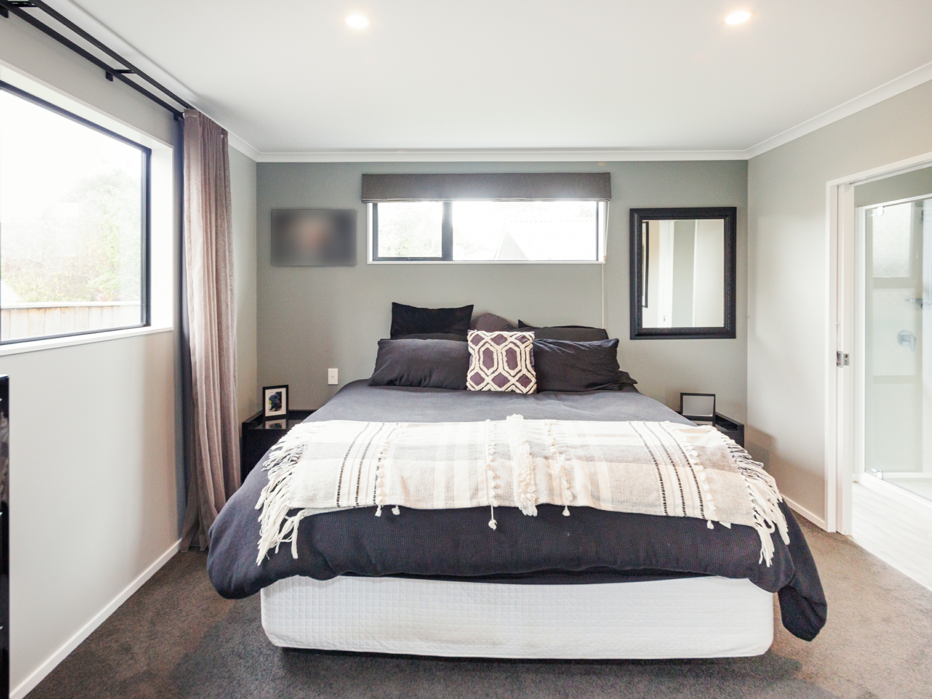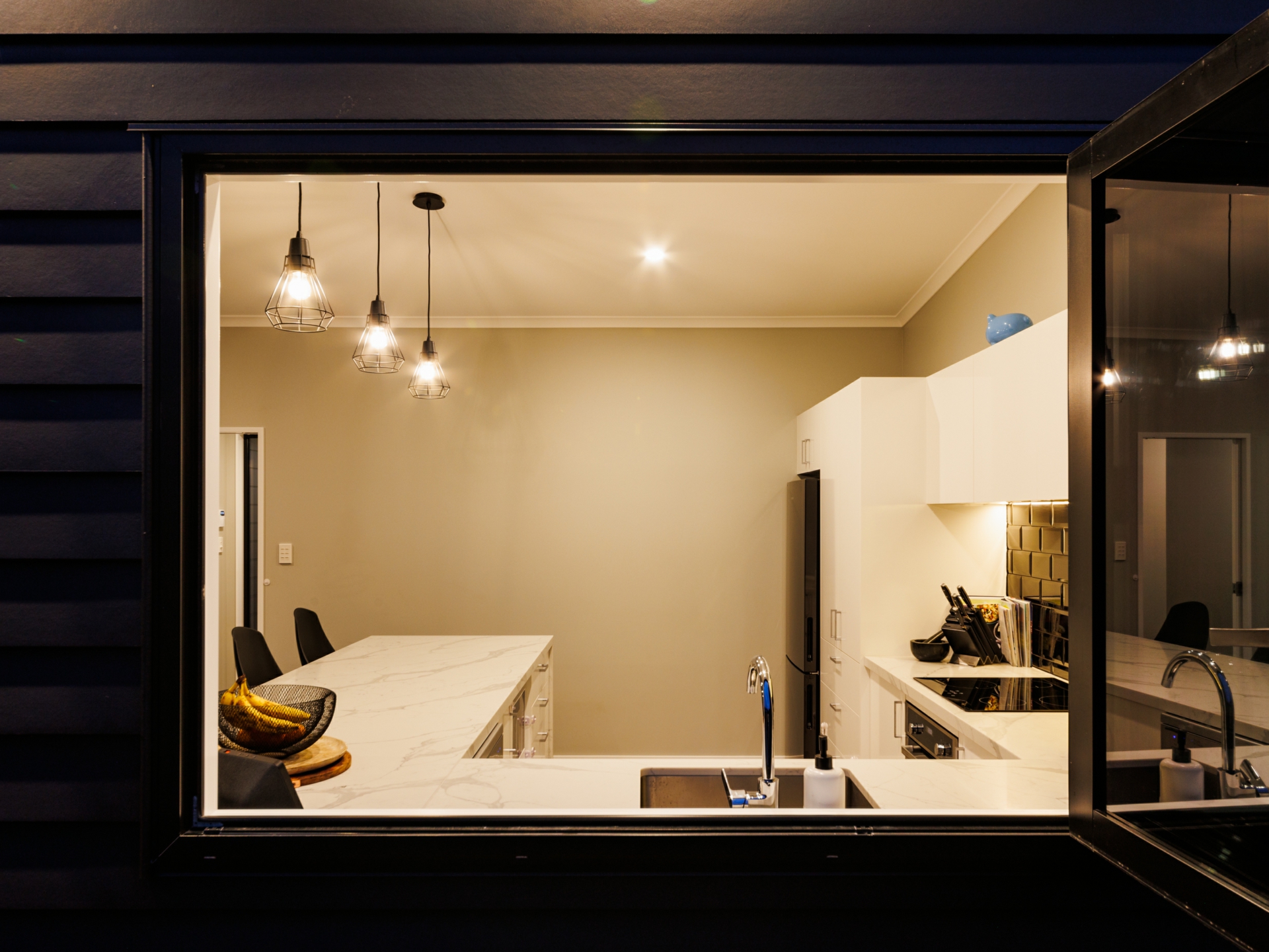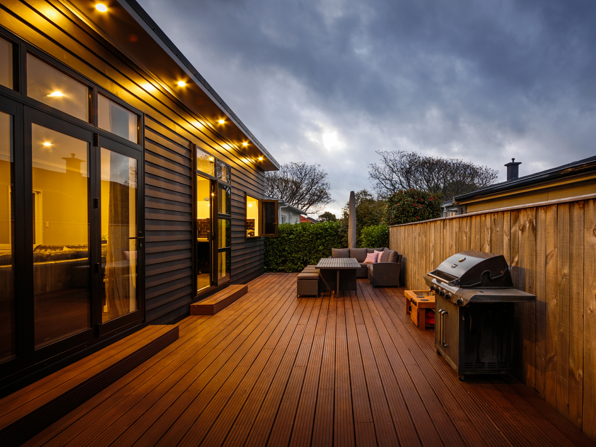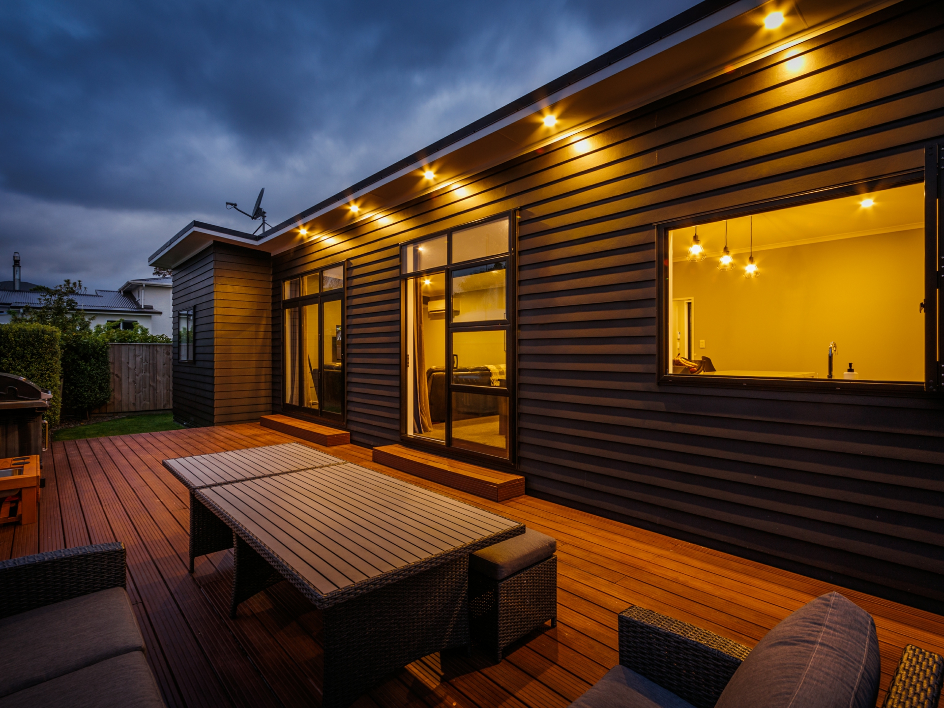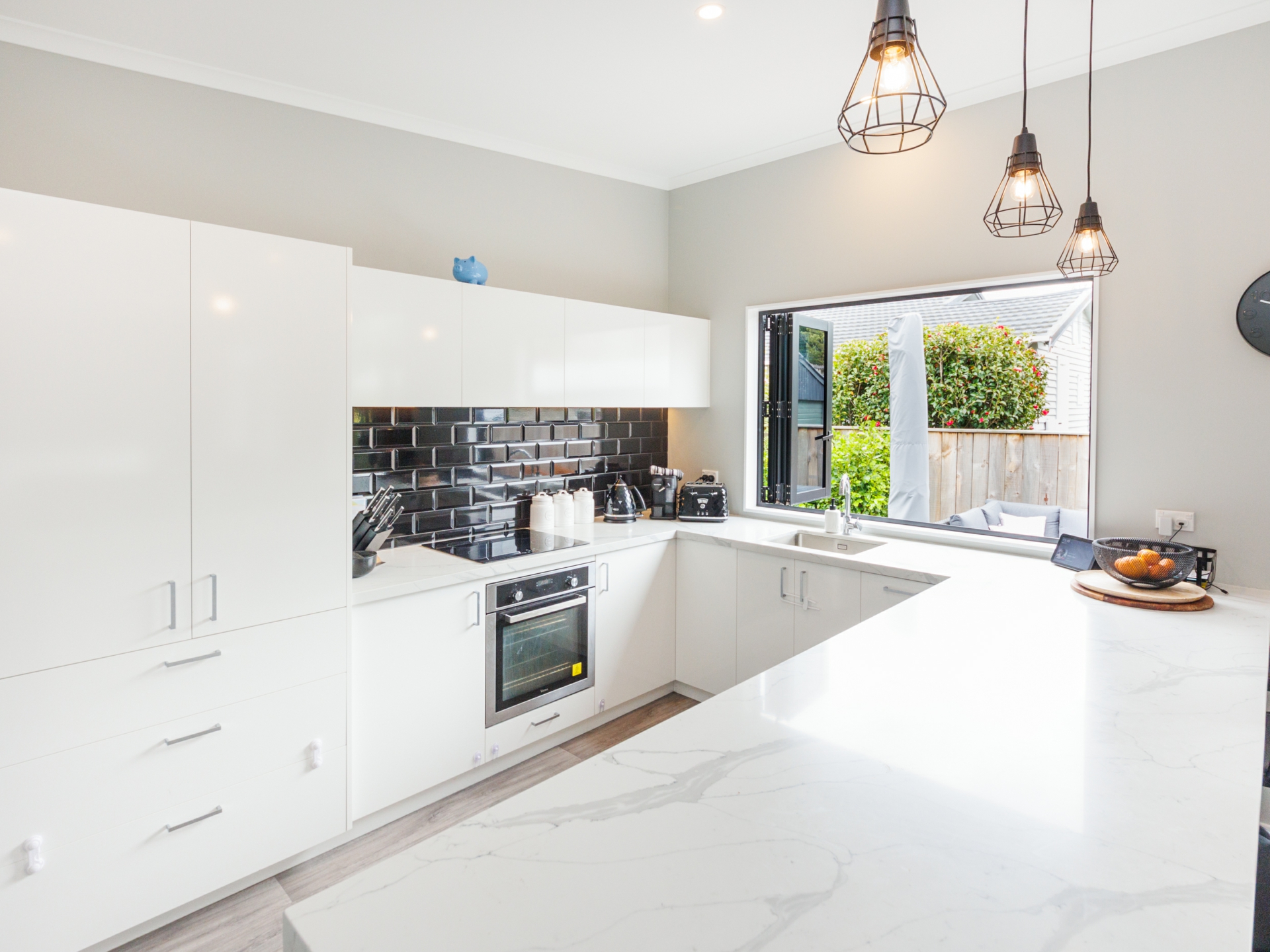 Beautifully designed modern kitchen offers high quality appliances, ample bench space & stunning black subway tile splashback. Bi-folding window opens out to the deck so you can socialise with your guests. Open plan dining & living equipped with heatpump. Bi-folding doors flowing out to the sunny deck. A perfect place for entertainment.