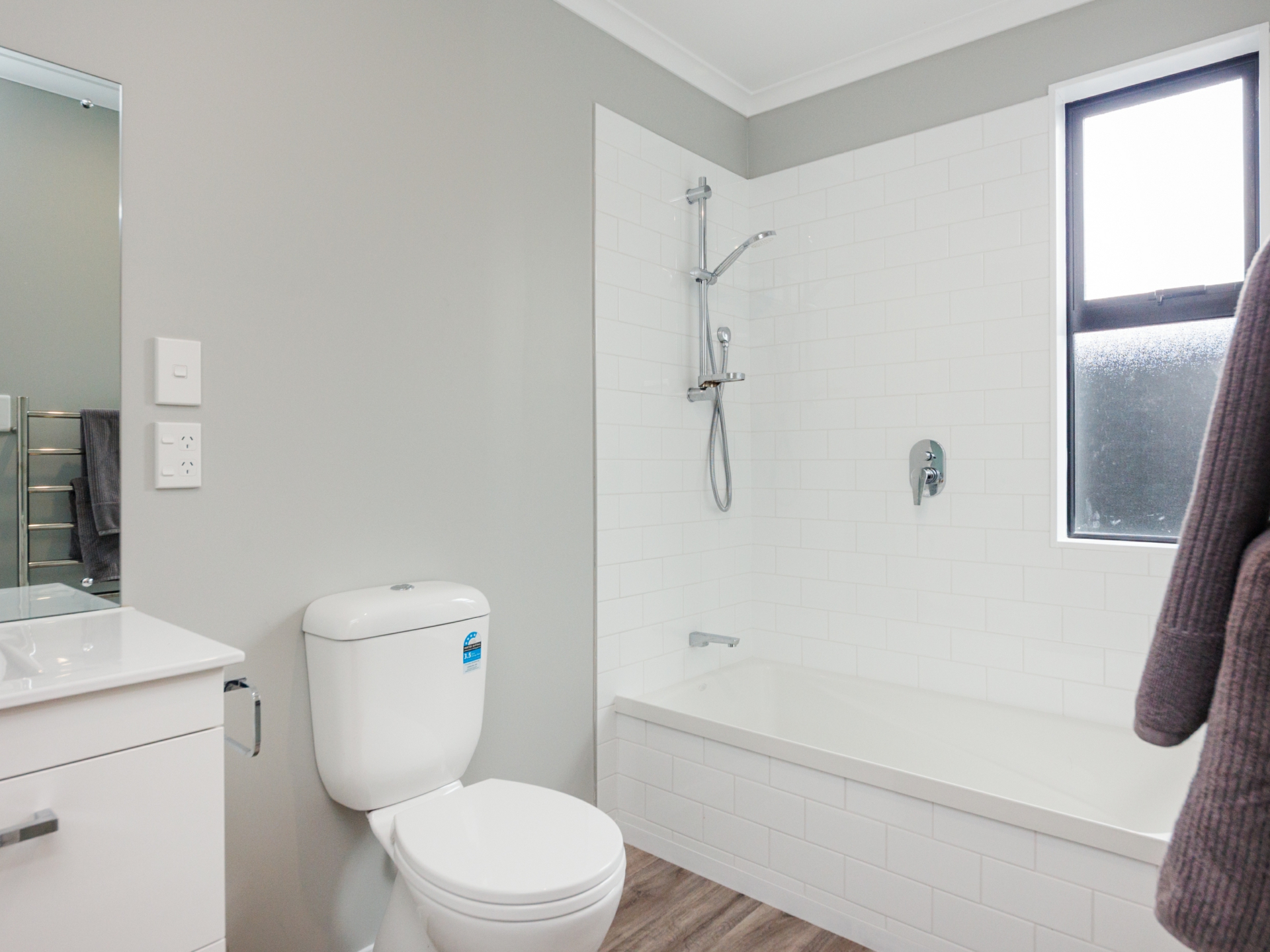 Three well sized bedrooms equipped with wardrobes. Master offers walk in wardrobe and ensuite with shower, vanity and toilet.