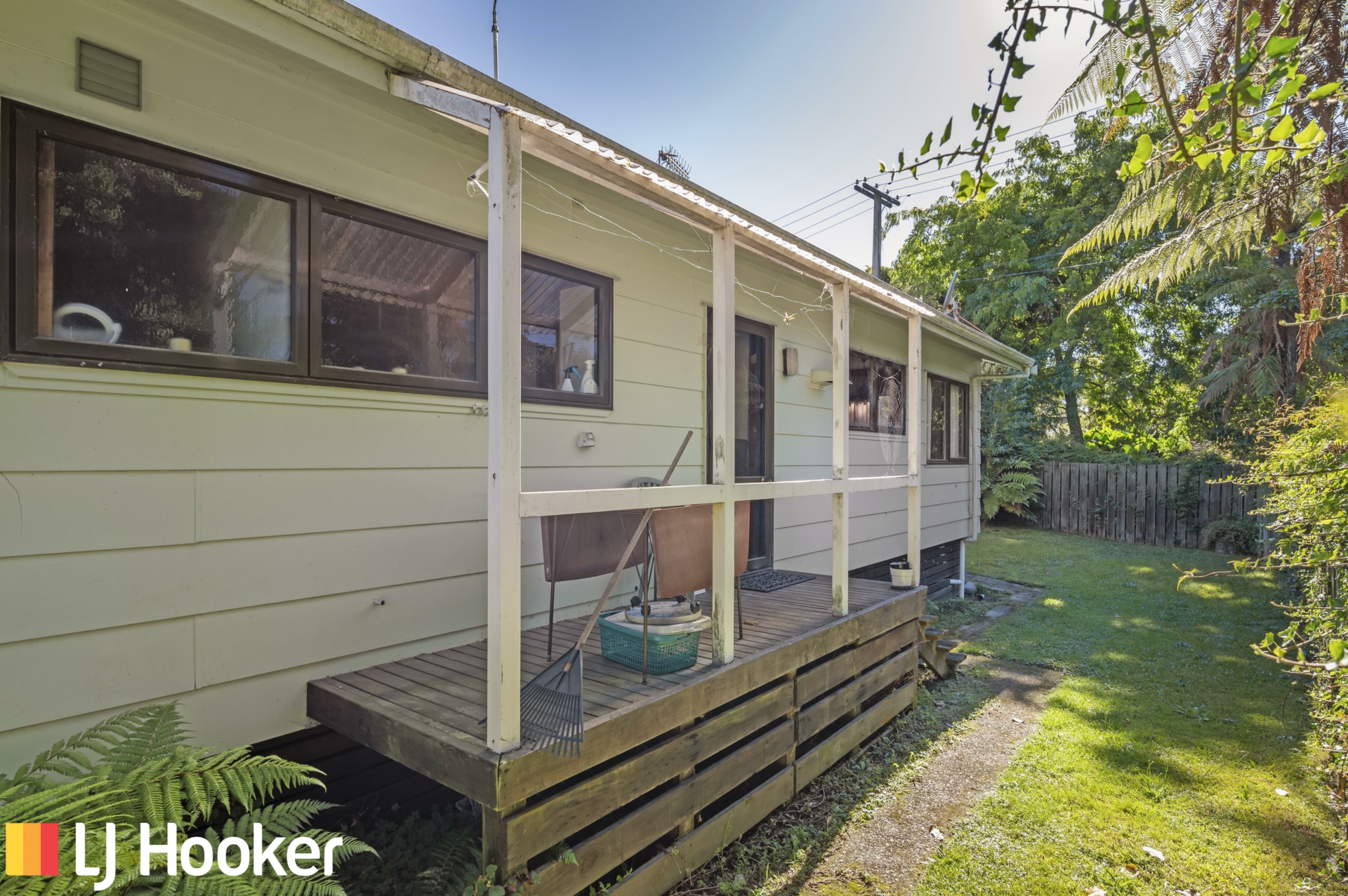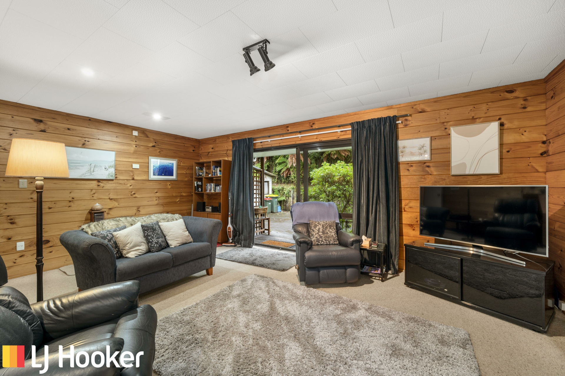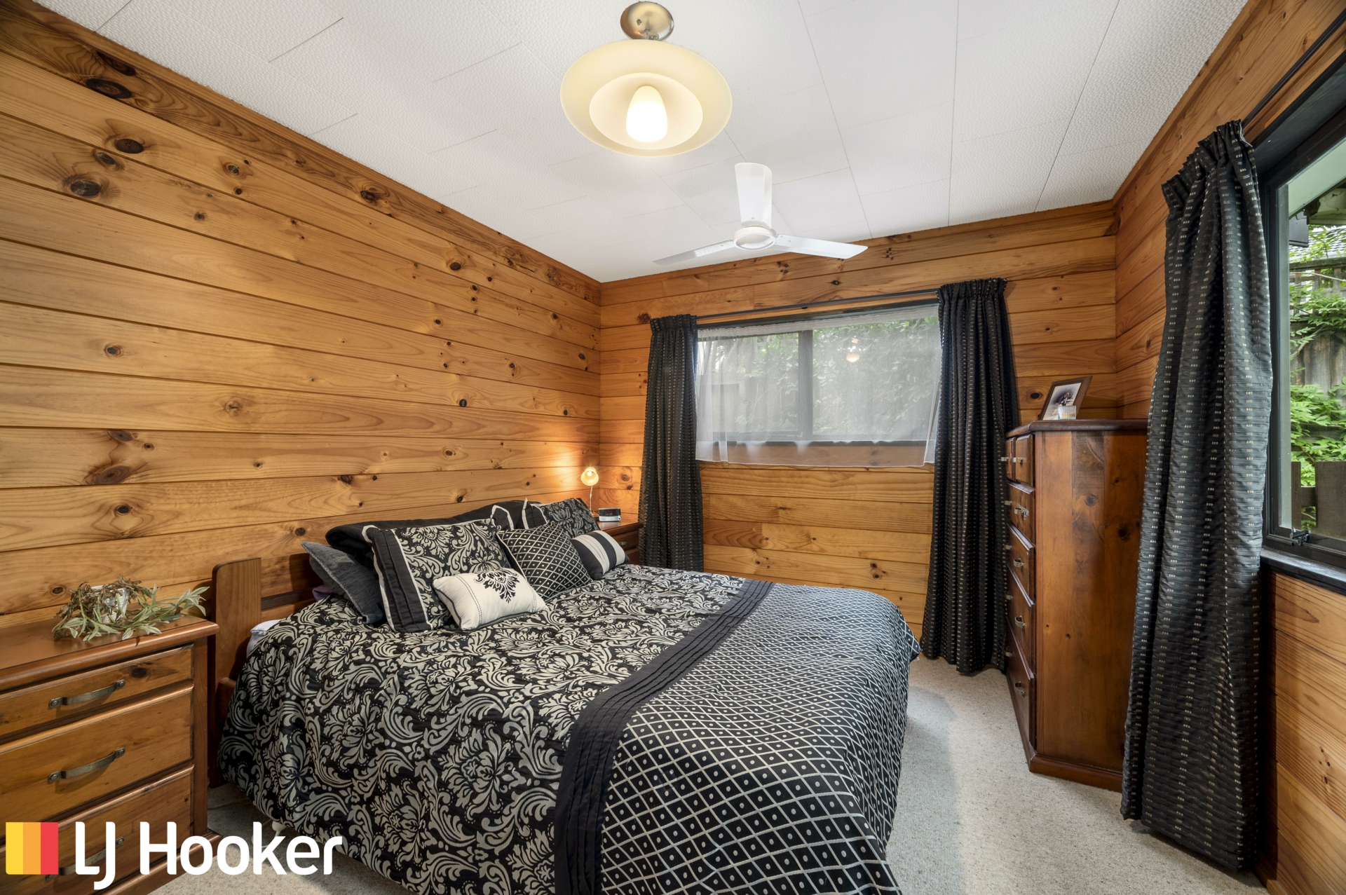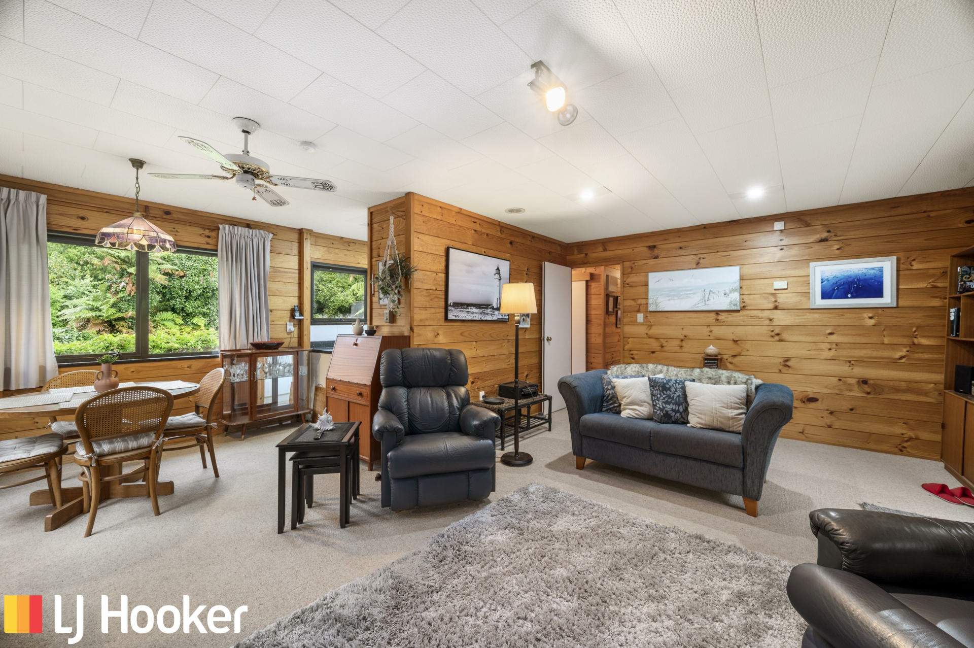The wooden interior along with a gas fire creates a cosy atmosphere and the windows allowing natural light to make it a very attractive home. A modern galley kitchen, separate laundry and open plan lounge and dining area creates an easy living space. The bedrooms are of a good size and lead off a wide hallway.