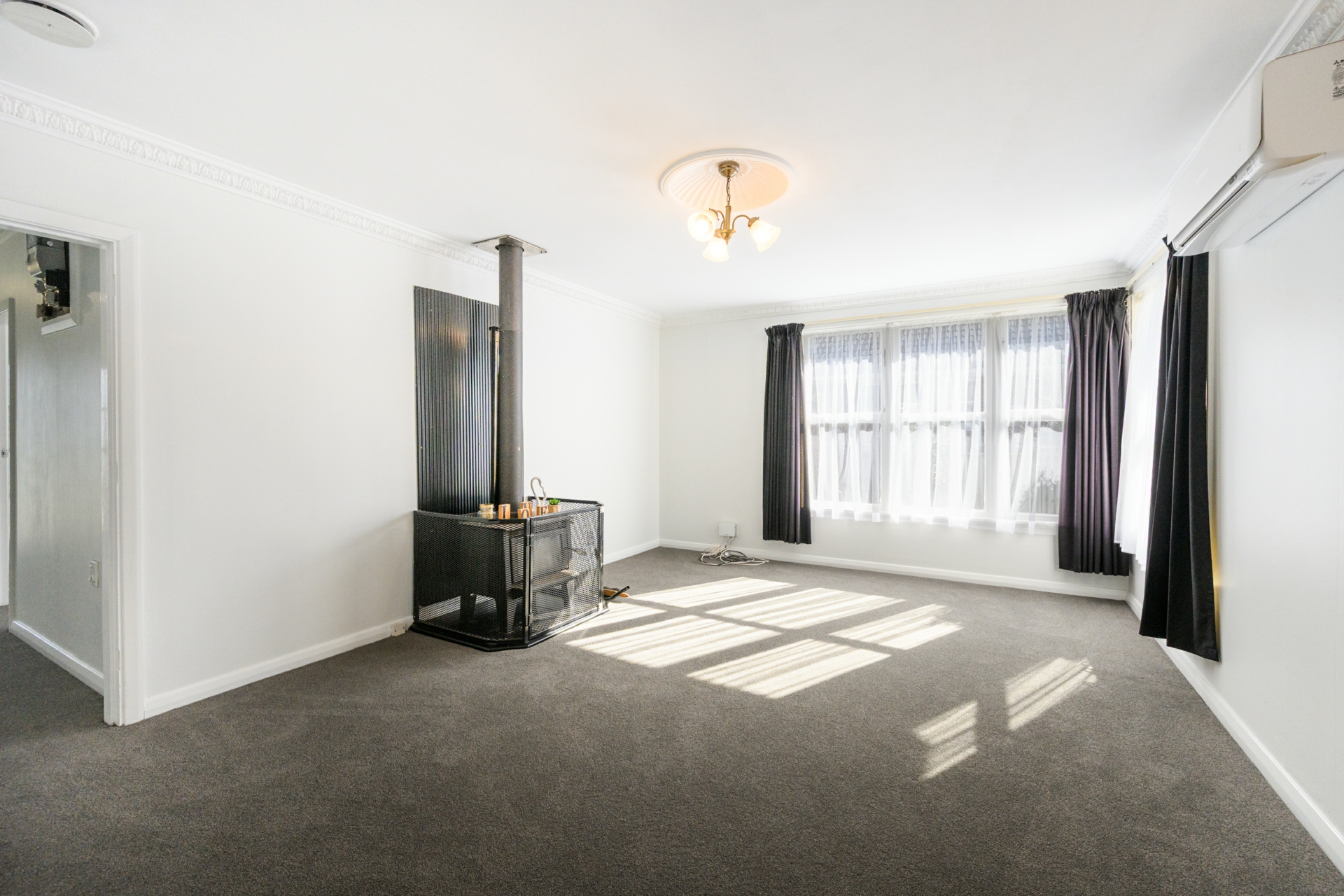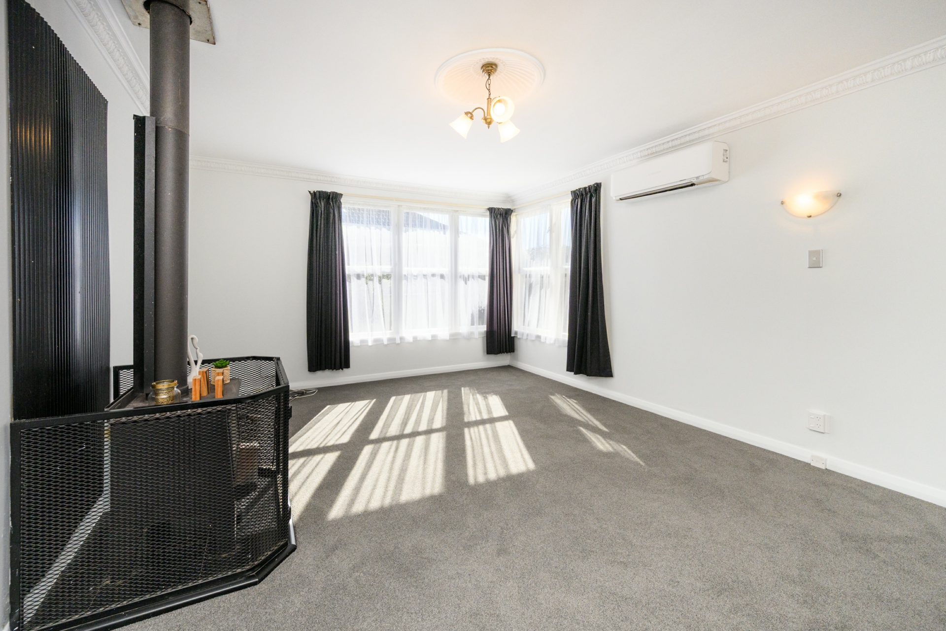 Step inside to discover a freshly painted, modern interior featuring brand-new carpet and brand new lino. The sun-soaked living area is both spacious and inviting, complete with a log burner for cosy winter days, plus a heat pump and HRV system to keep you comfortable year-round.