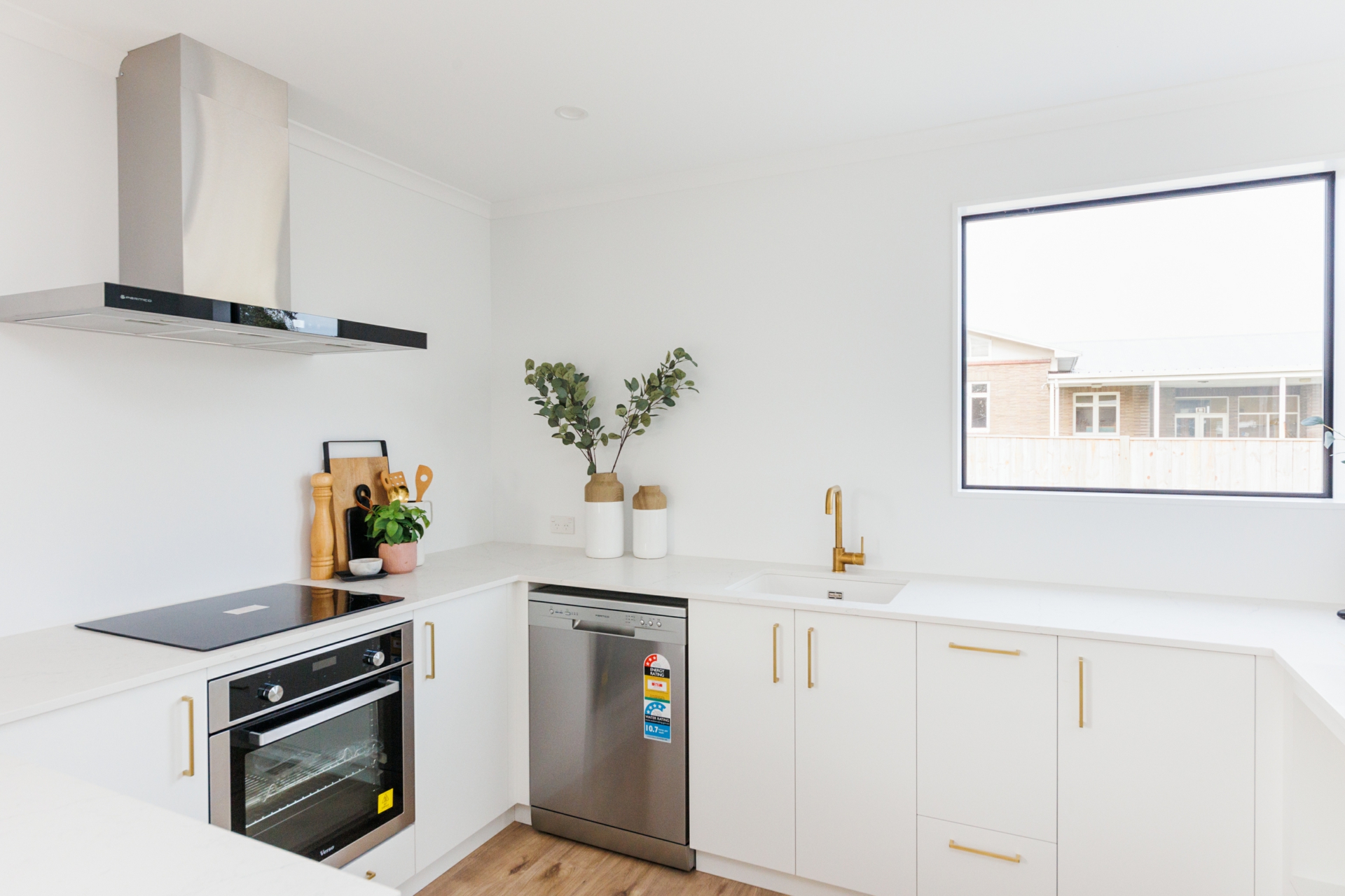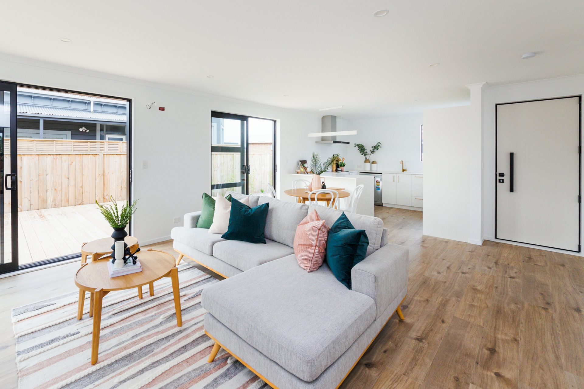 Step inside to discover a beautifully designed kitchen featuring a breakfast bar and quality appliances. The spacious open plan living area is bathed in natural light, enhanced by two ranch sliders that seamlessly connect the indoors with the outdoors, leading to an perfectly positioned expansive sunny decking area.