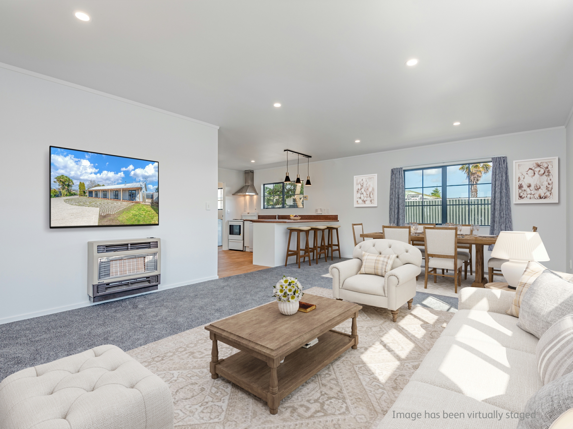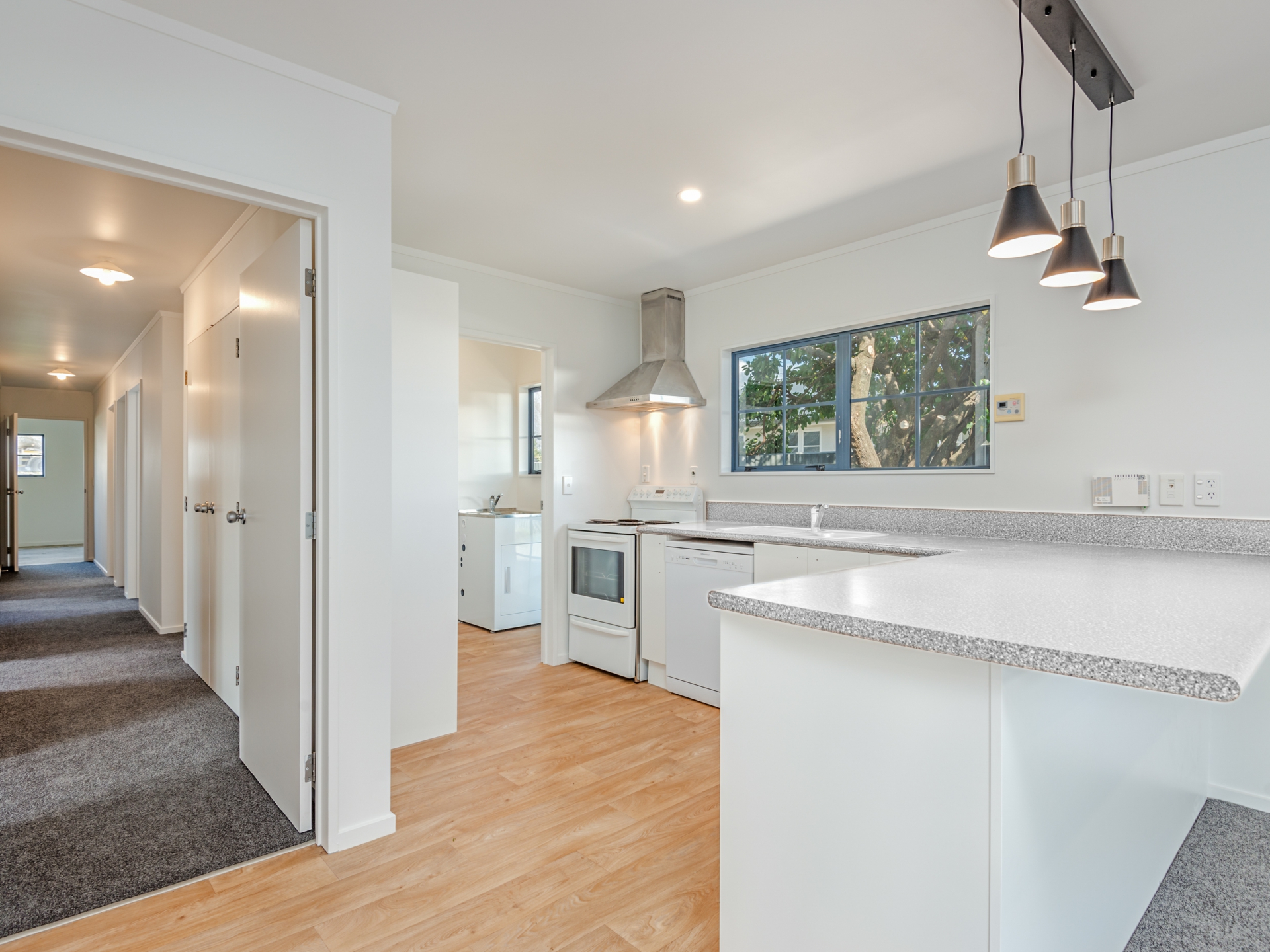The 160m2 (more or less) home has spacious open plan living, with a gas heater for heating, with an updated kitchen, and a breakfast bar. The 5 double bedrooms all have their own external access outside, allowing family or flatmates to come and go from their own space without passing through the rest of the household. The bathroom has been well thought out with a separate shower, separate toilet, and separate bath and vanity keeping the morning arguments in the household to a minimum. The home has been modernised throughout with new paint, carpet, curtains, and lighting creating a fresh and modern feel.